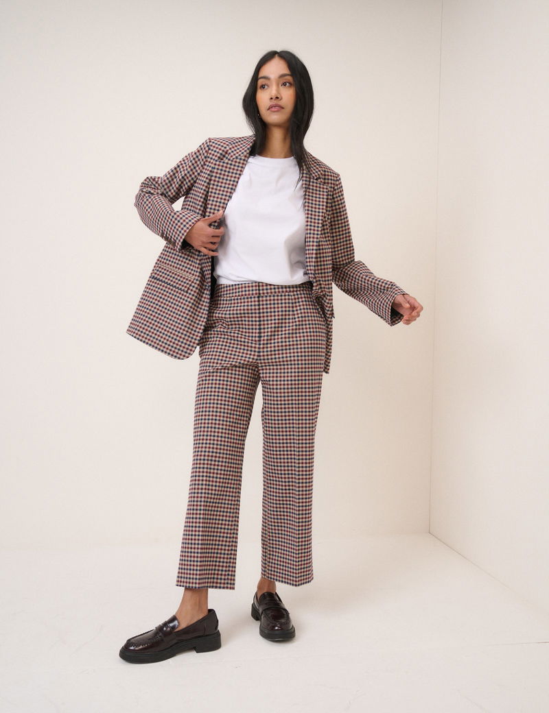 Red And Navy Gingham Tailored Trousers