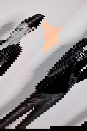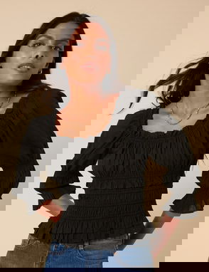 In soft cord, this red blouse features a Peter Pan collar, long balloon sleeves and underbust seams. Cut to a slim fit, it's finished with a button front. Don't miss the tie-back detail for the perfect fit.