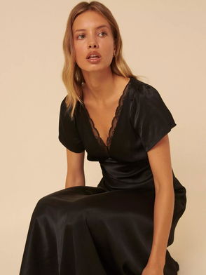 Sienna V-neck Lace Trim Midaxi Dress In Black