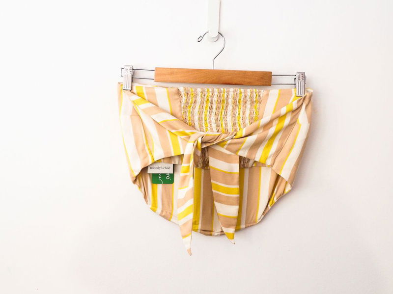 Channelling 90s chic, this crop top from Nobody's Child flatters the figure with its striped pattern. Topped with a bandeau neckline and a sleeveless design, it is made with light yet robust fabric for longevity of wear and pairs effortlessly with floaty summery skirts for warm days spent with good friends.