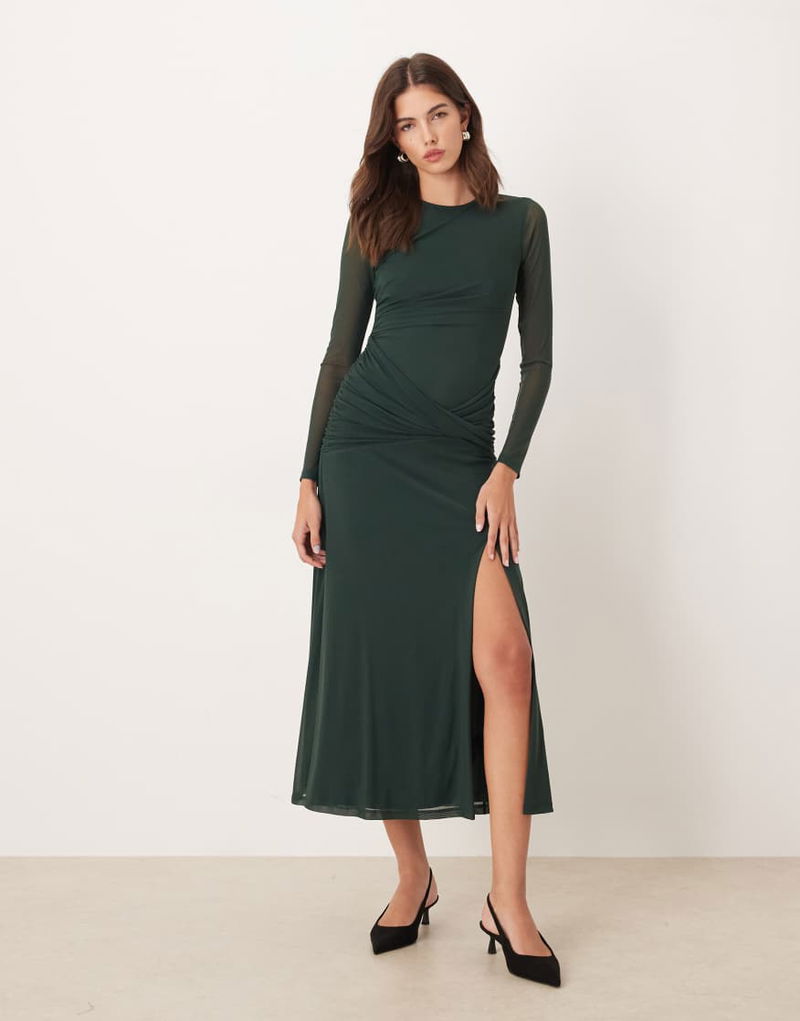 Tammy Ruched Drape Midaxi Dress In Dark Green