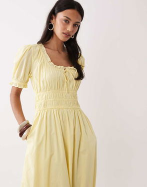 Tula Square Neck Puff Sleeve Cotton Midi Dress, White