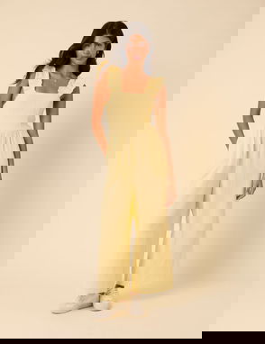 Minimal effort, maximum payoff. Heart design Sweetheart neck Button placket Wide leg Regular fit.