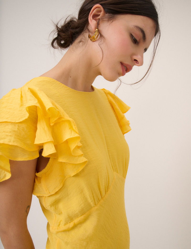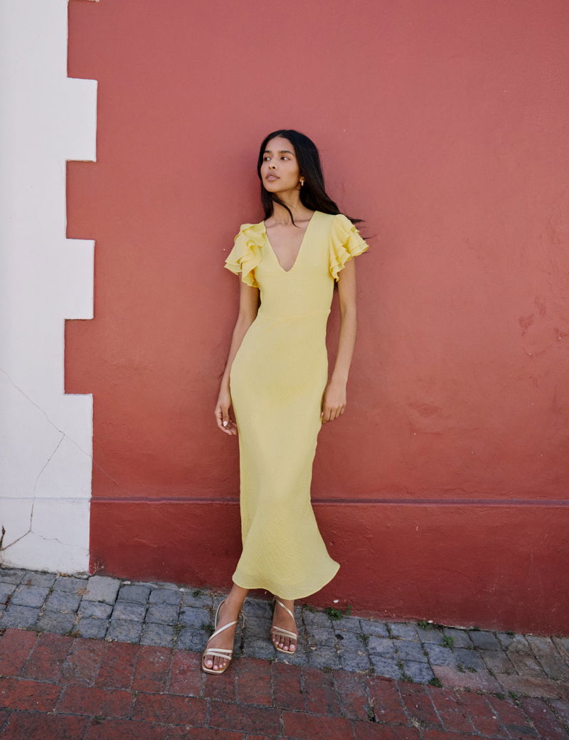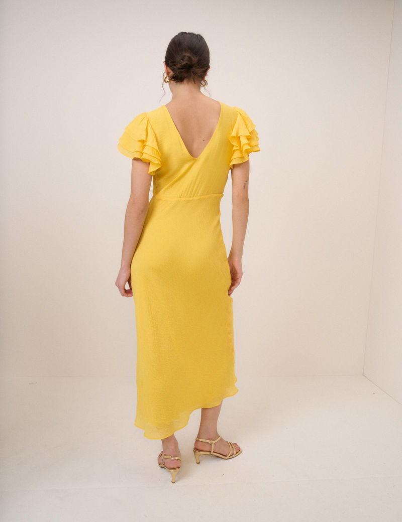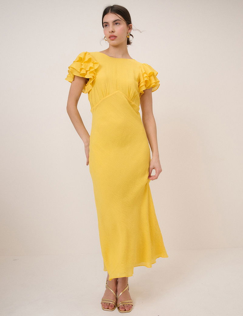 Yellow Frill Sleeve Lola Midi Dress