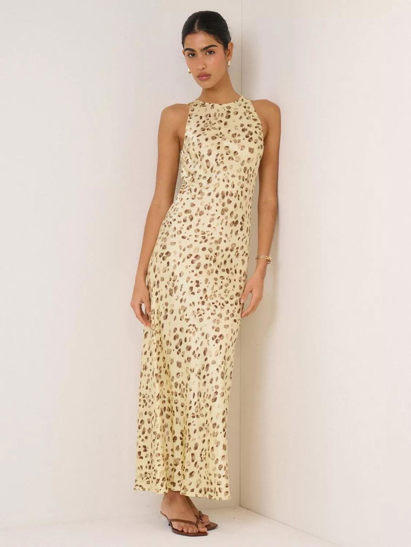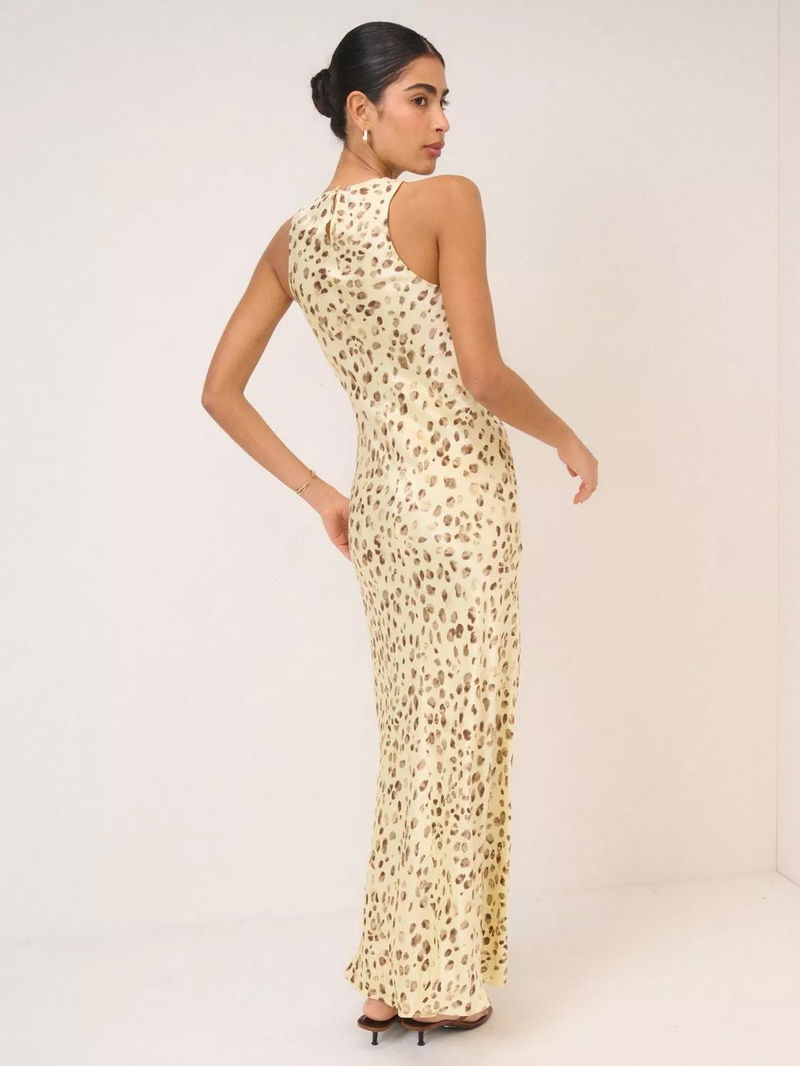 Zahara Sleeveless Leopard Print Midaxi Dress, Yellow/Brown