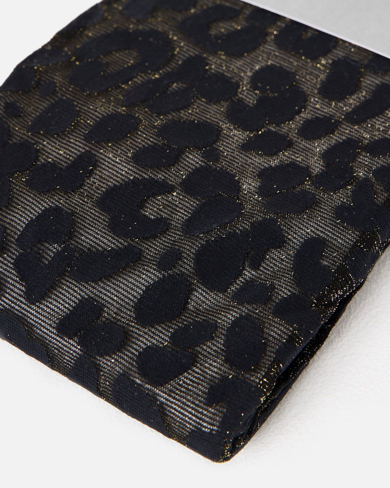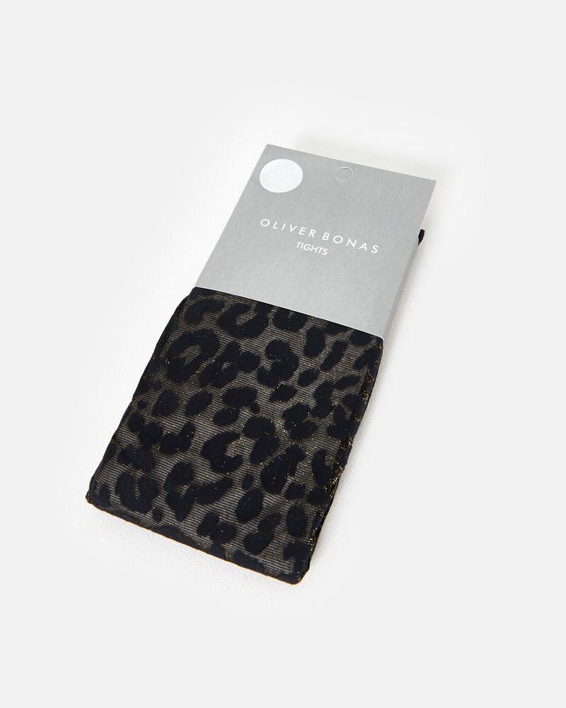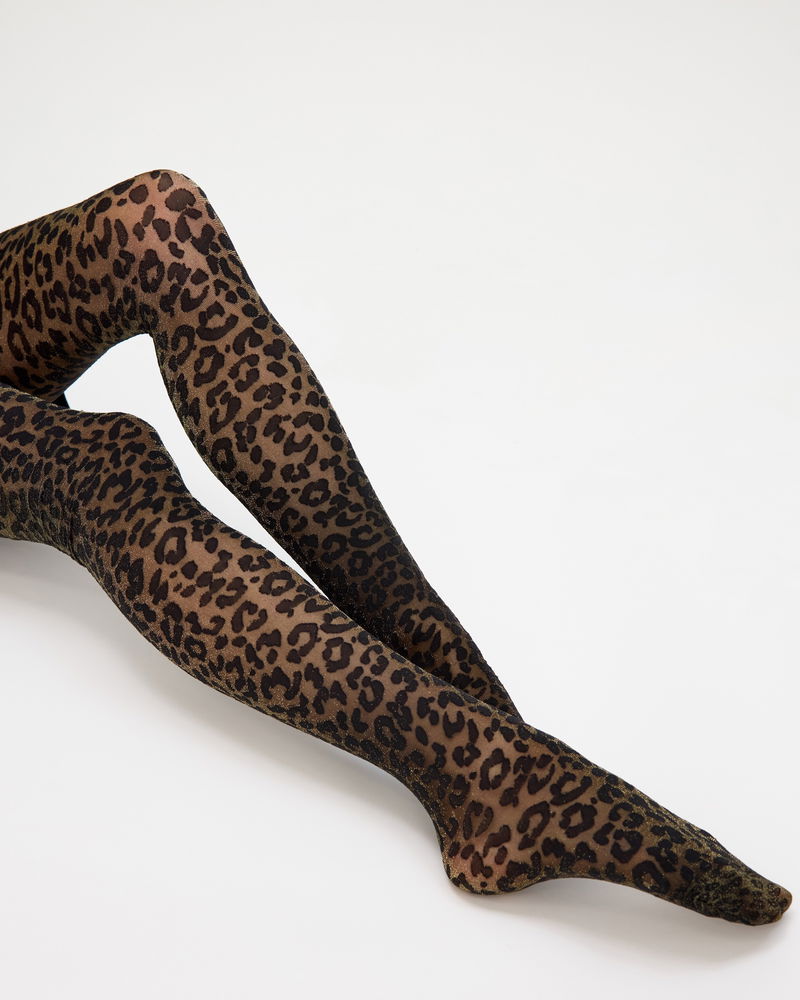 Because everyday basics don't have to be basic. Meet our 30 denier black tights woven in a leopard print with gold metallic flecks for added shimmer that make a fun, bold alternative to your everyday black pair.