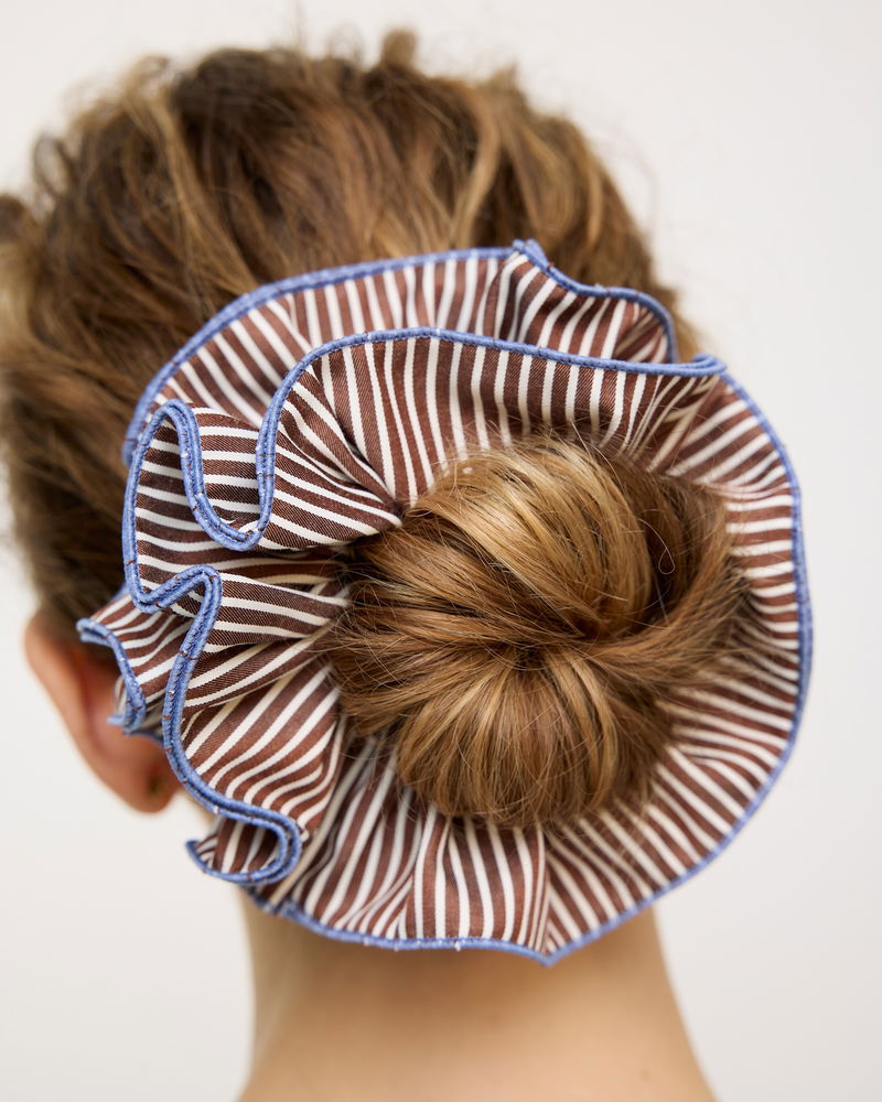 Anna Brown & White Striped Hair Scrunchie