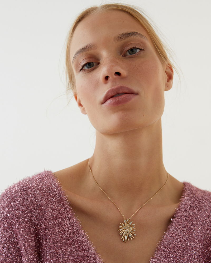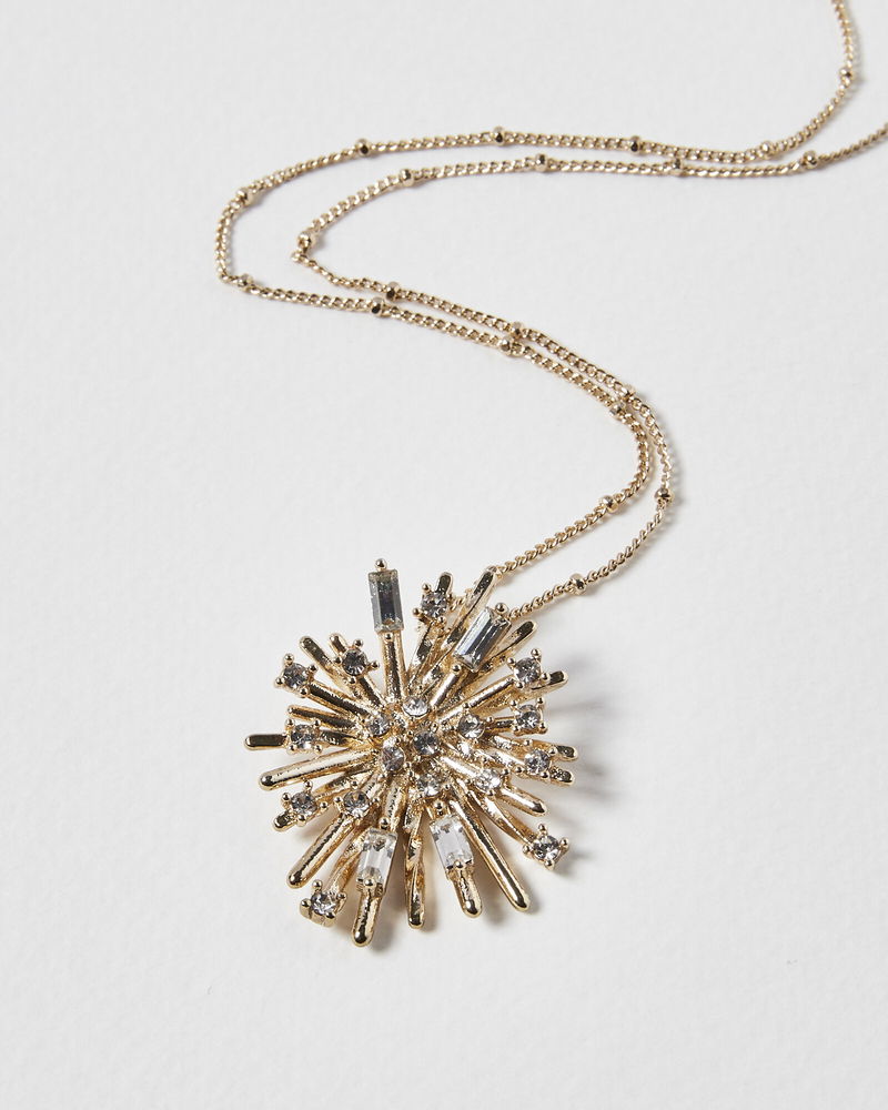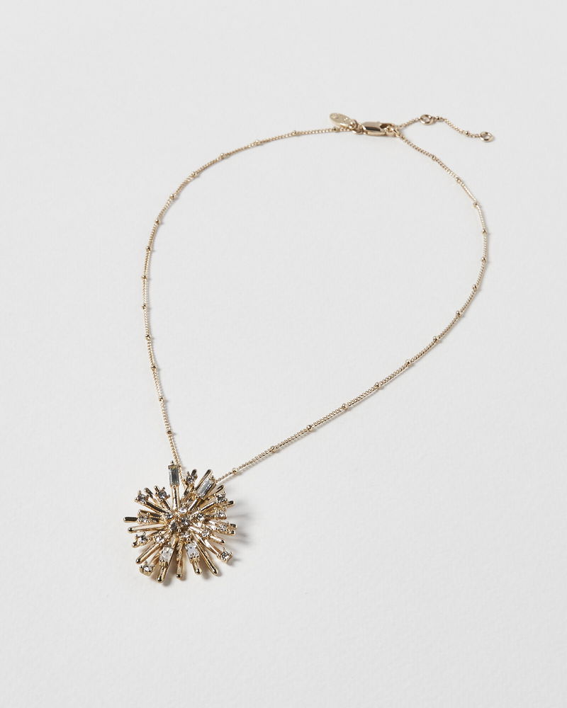 With a statement starburst pendant, this golden necklace features a beaded chain, extendable length and lobster clasp fastening.