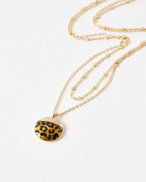 Black lanyard with a colourful leopard pattern and gold clasp.