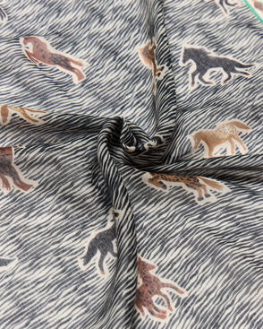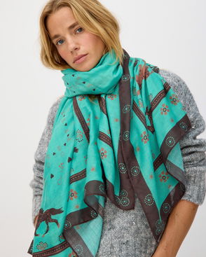 Designed in a tonal brown and cream spotted pattern featuring horse motifs, our knitted scarf offers just the right amount of warmth for chilly days. Finished with a classic frayed trim for extra style points, layer over your outfit as a blanket scarf or wrap it snugly for extra cosy comfort.