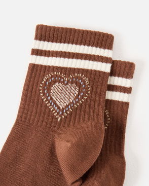 Brown Marl Cat Ribbed Sporty Ankle Socks
