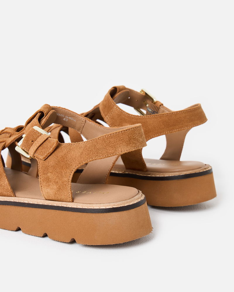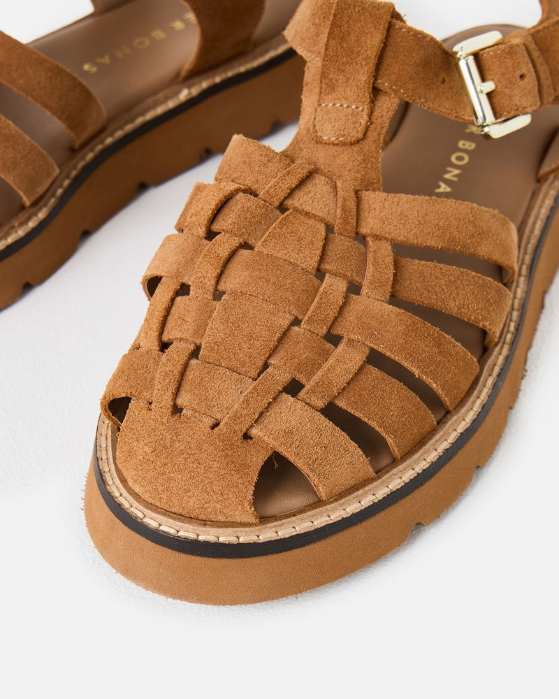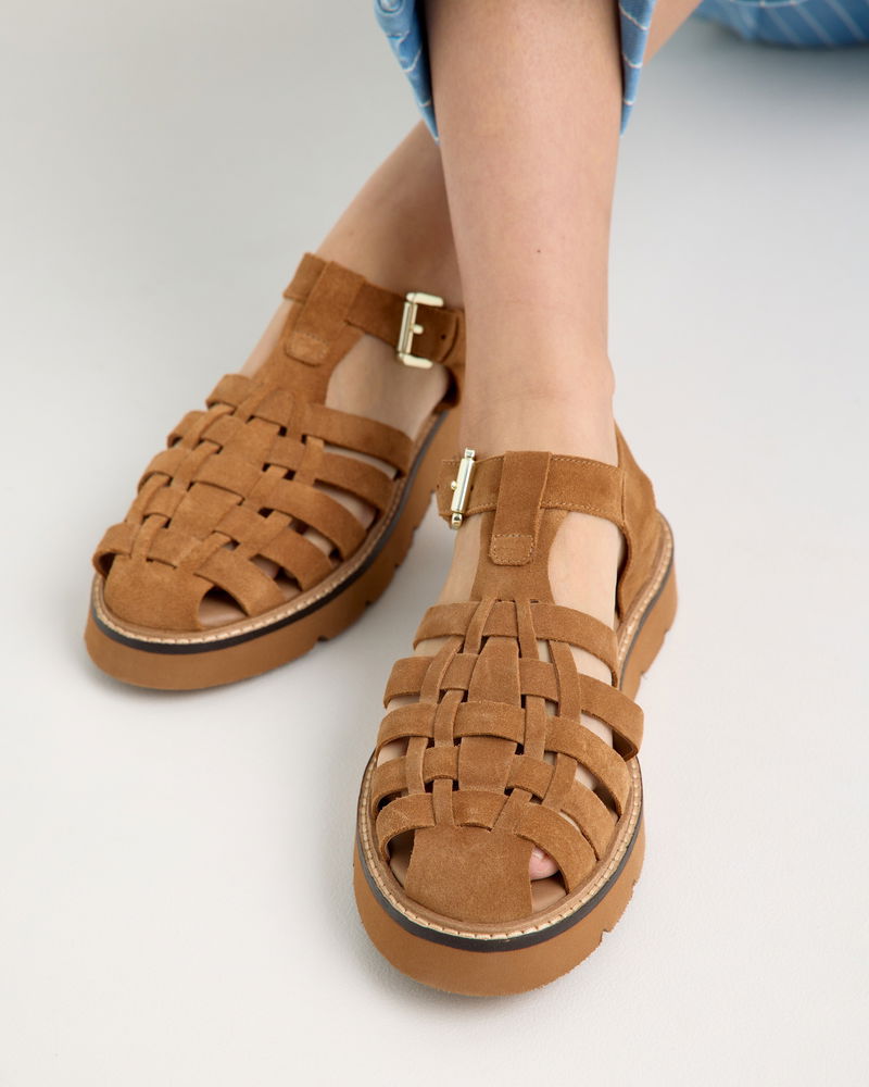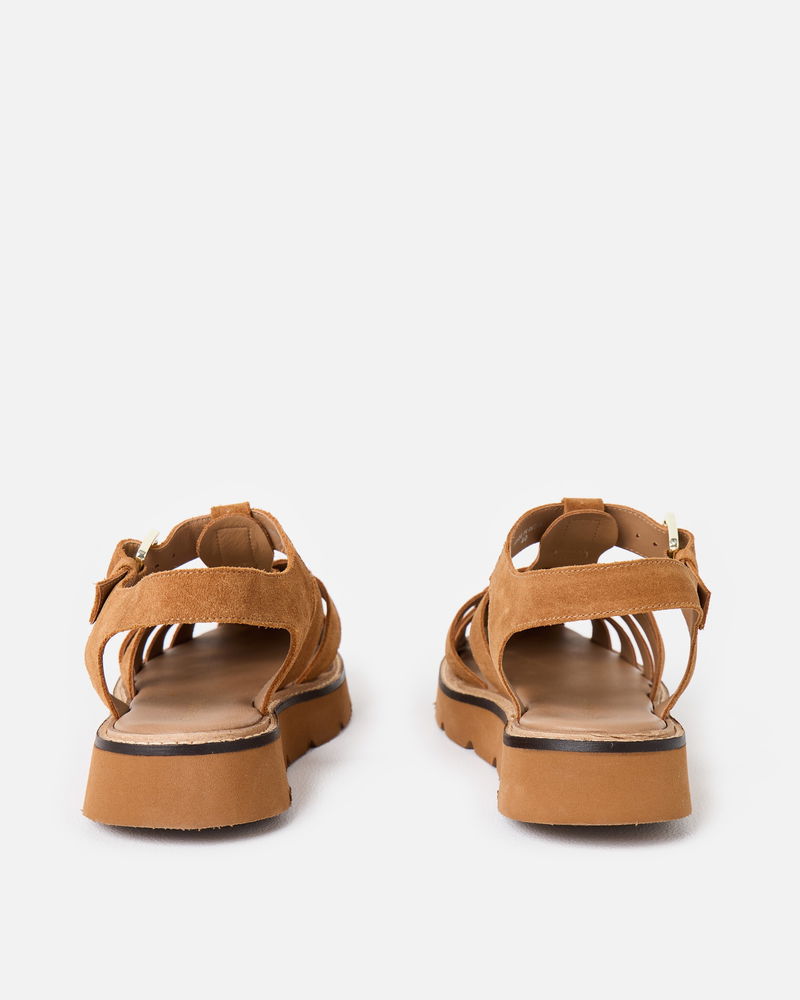 Ready for all-day summer stepping, our caramel brown fisherman sandals are crafted from soft suede leather.