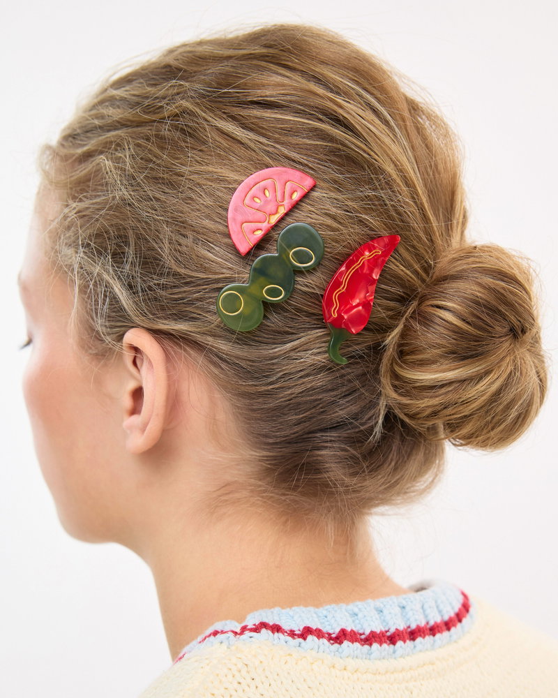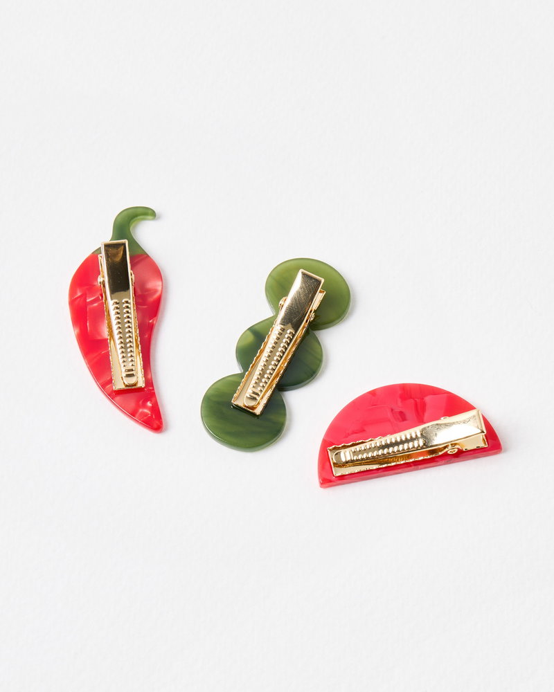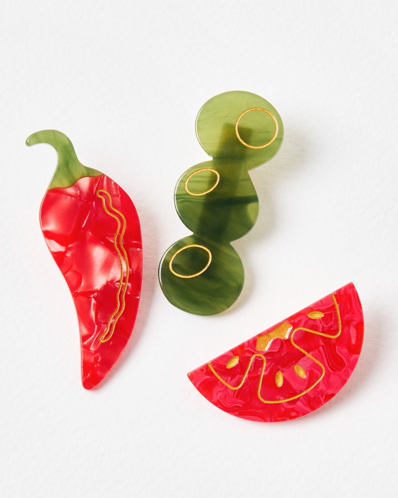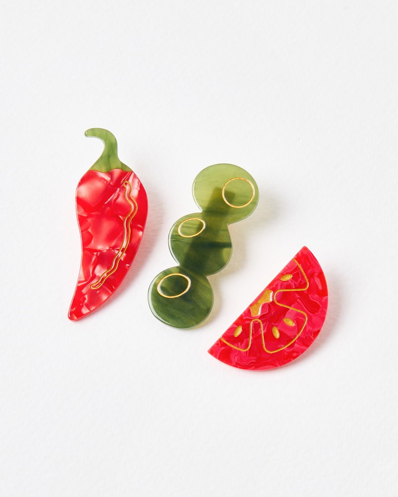 Chilli, Olives & Tomato Hair Clips Set Of Three