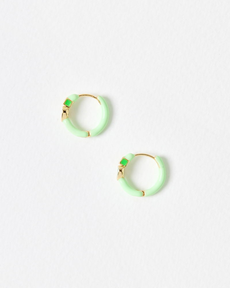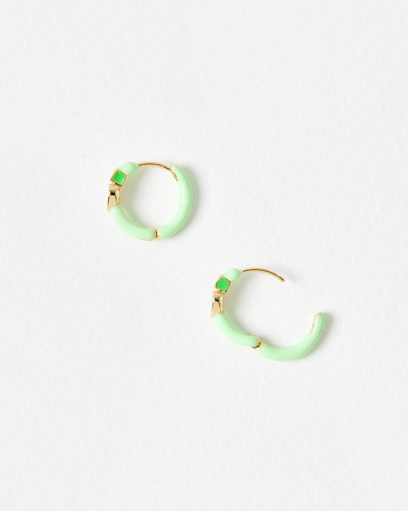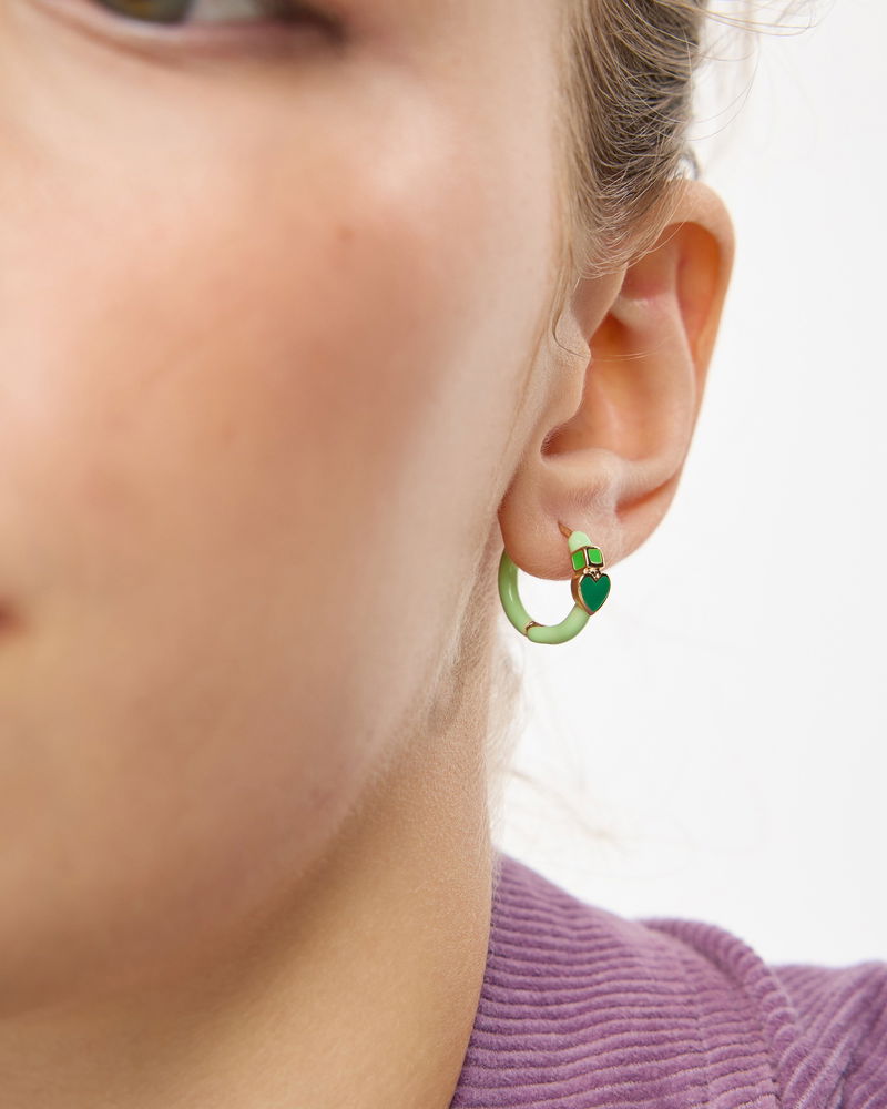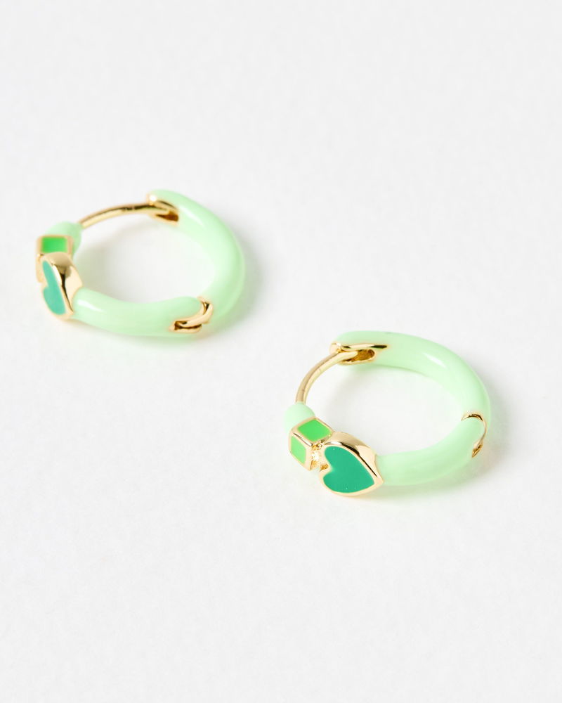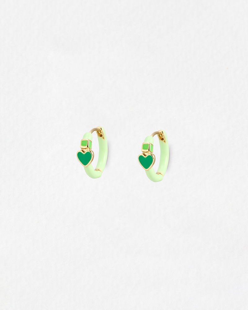Ciara Green Heart Enamel Huggie Earrings
