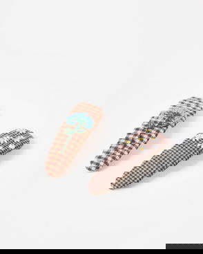 Set of two silver hair clips with a blue and lilac purple velvet ribbon bow.