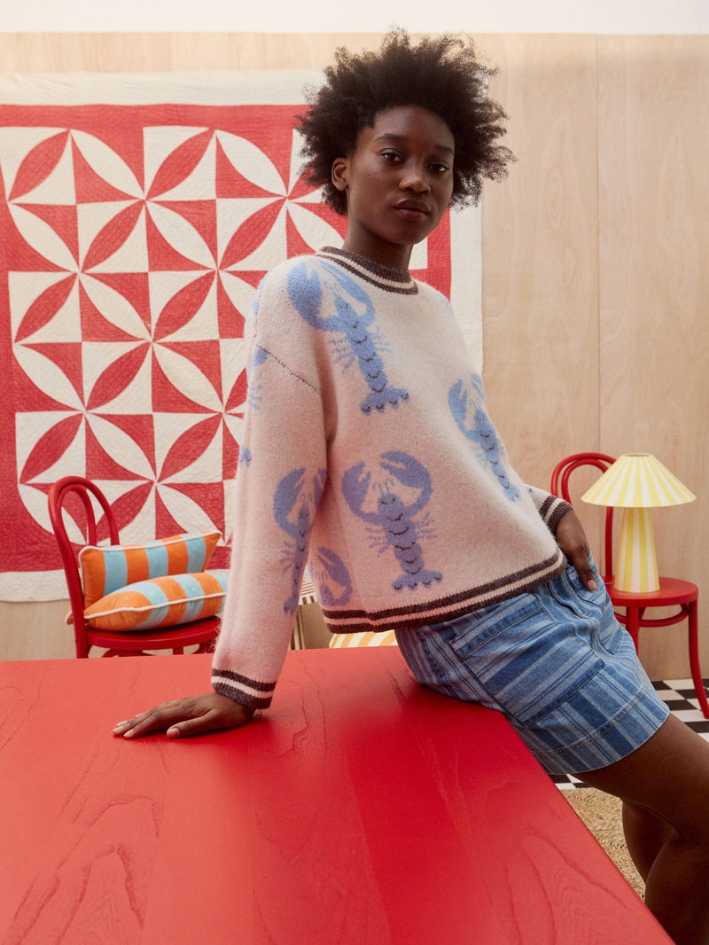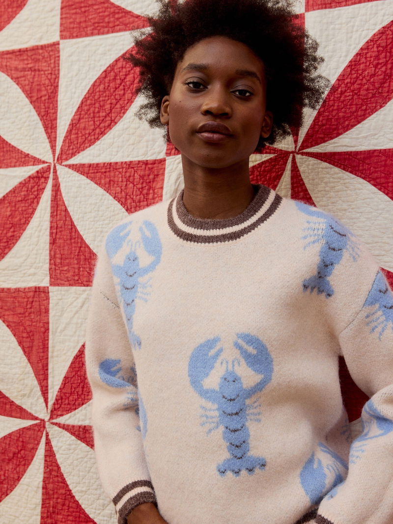 Cream & Blue Lobster Crew Neck Knitted Jumper