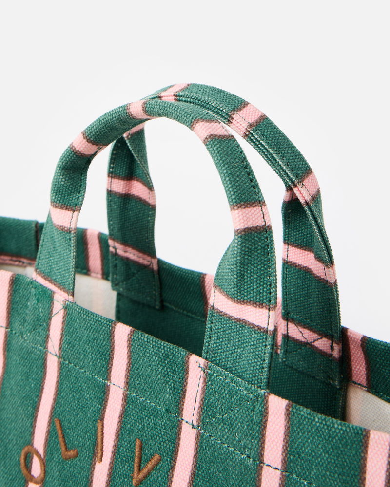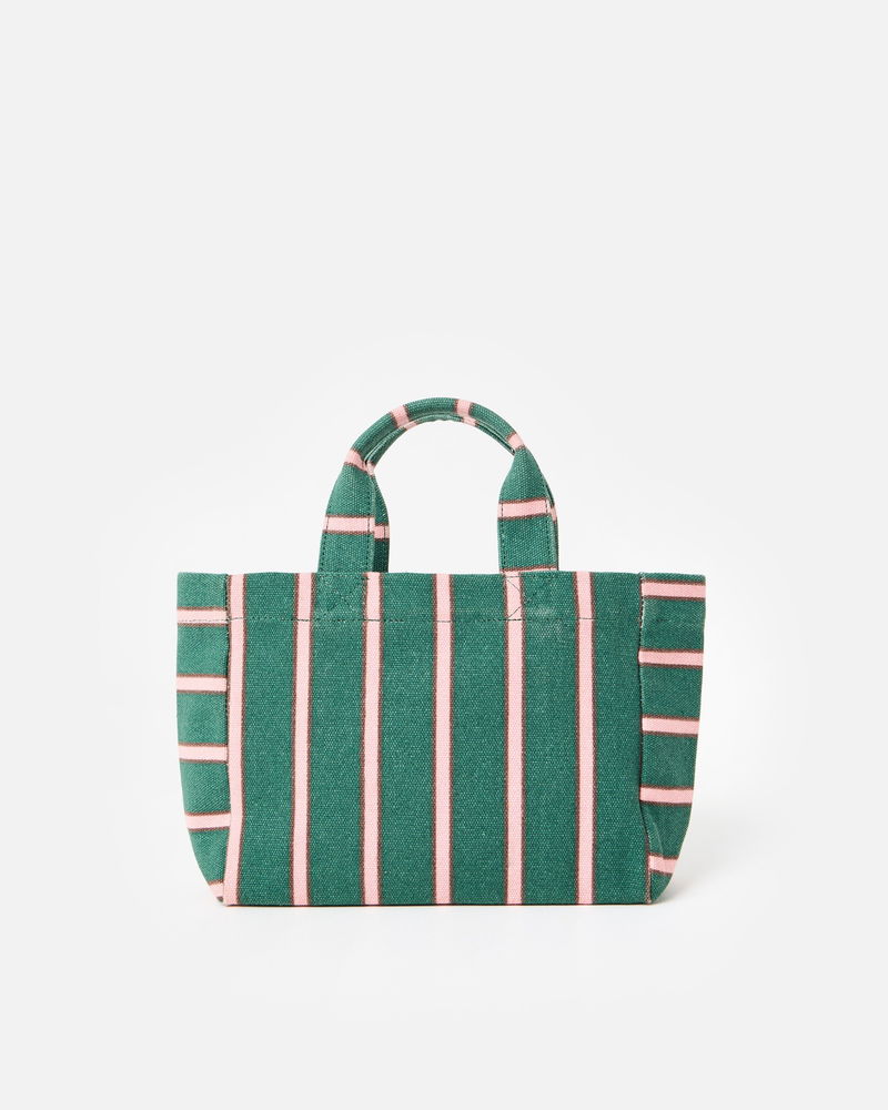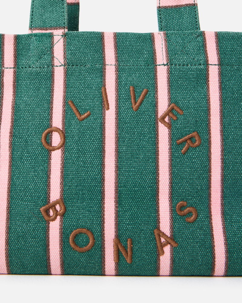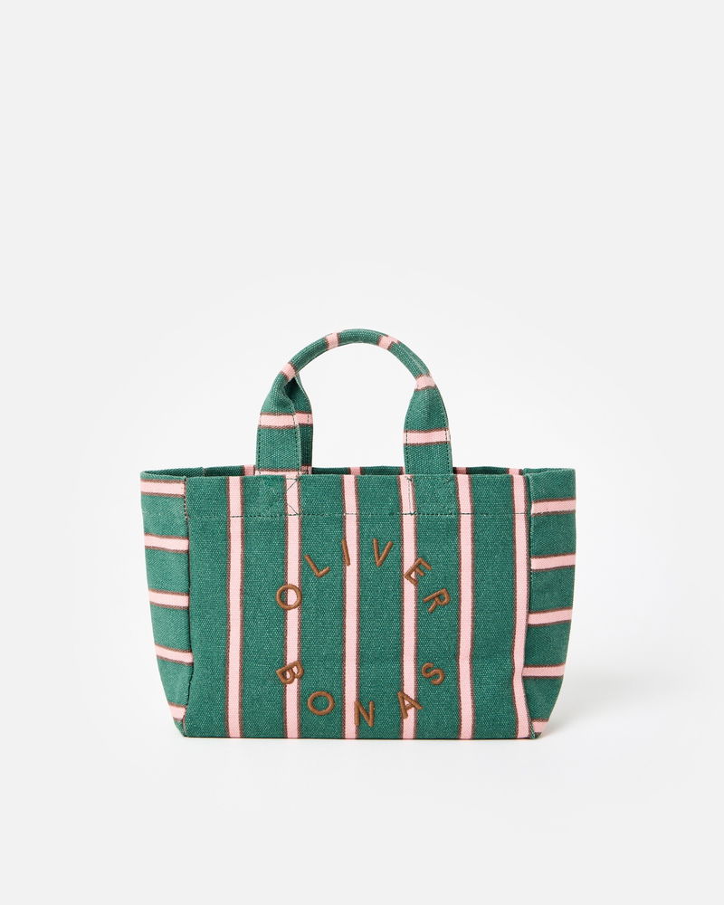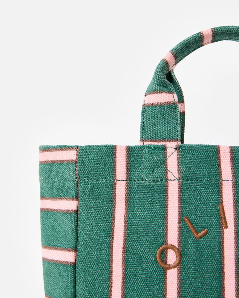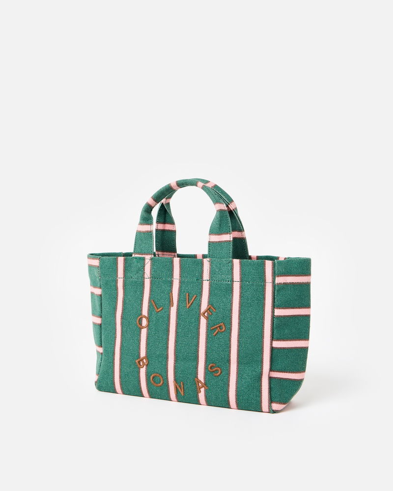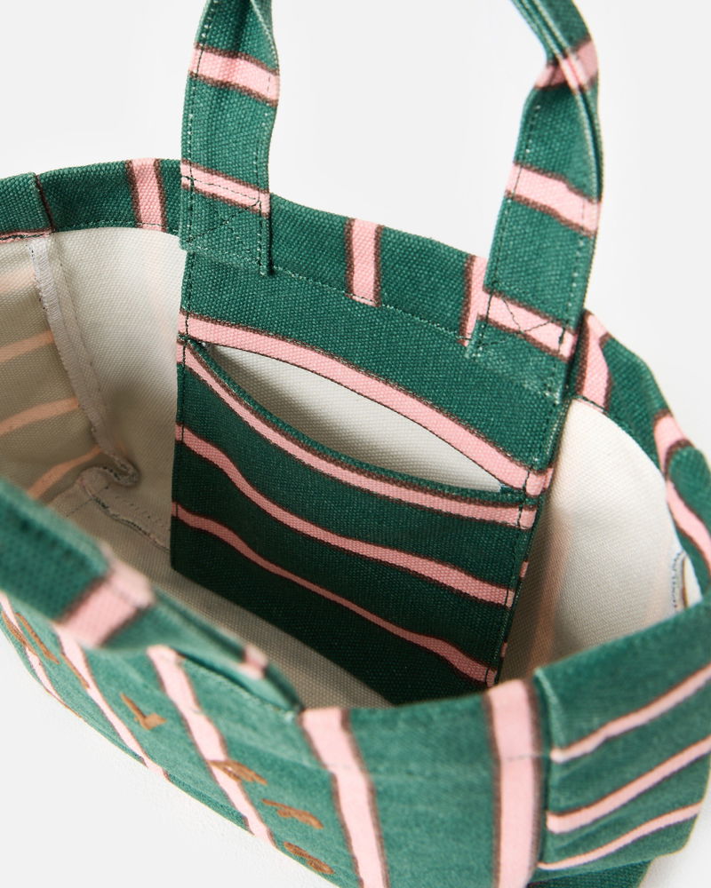 Dark Green & Pink Striped Logo Fabric Mini Tote Bag