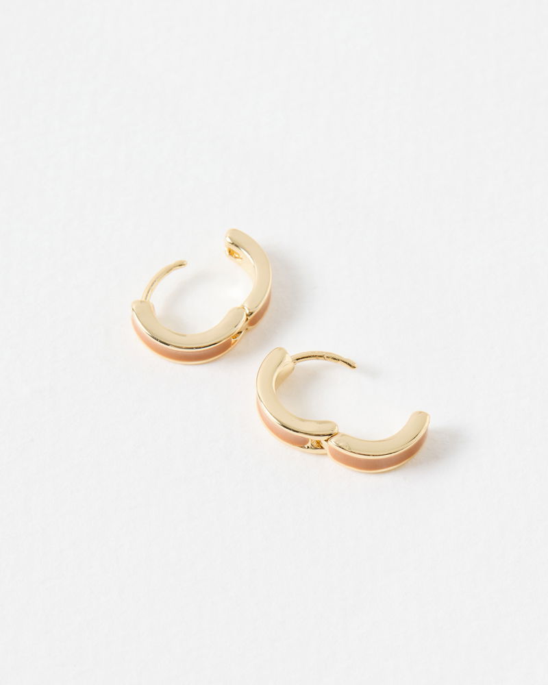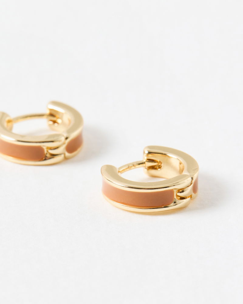 Emma Brown Enamel Gold Tone Huggie Earrings