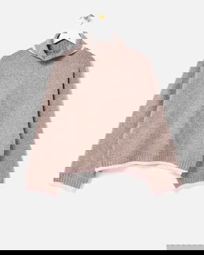 Cobalt blue funnel neck jumper knitted in a plait stitch with ribbed stitches across the hem and cuffs.