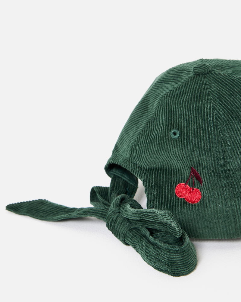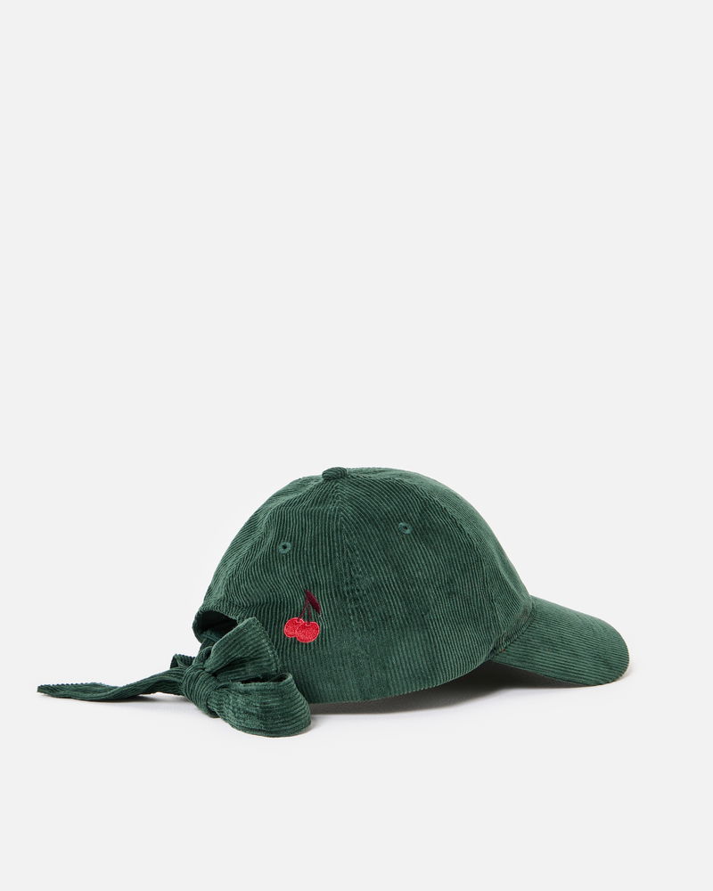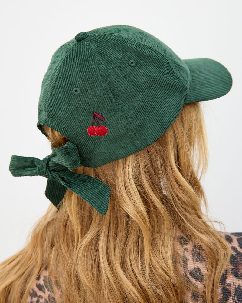 Green Corduroy Bow Cherry Cap Hat