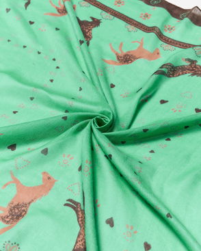 Heavyweight scarf woven in a tonal green fluffy leopard pattern.