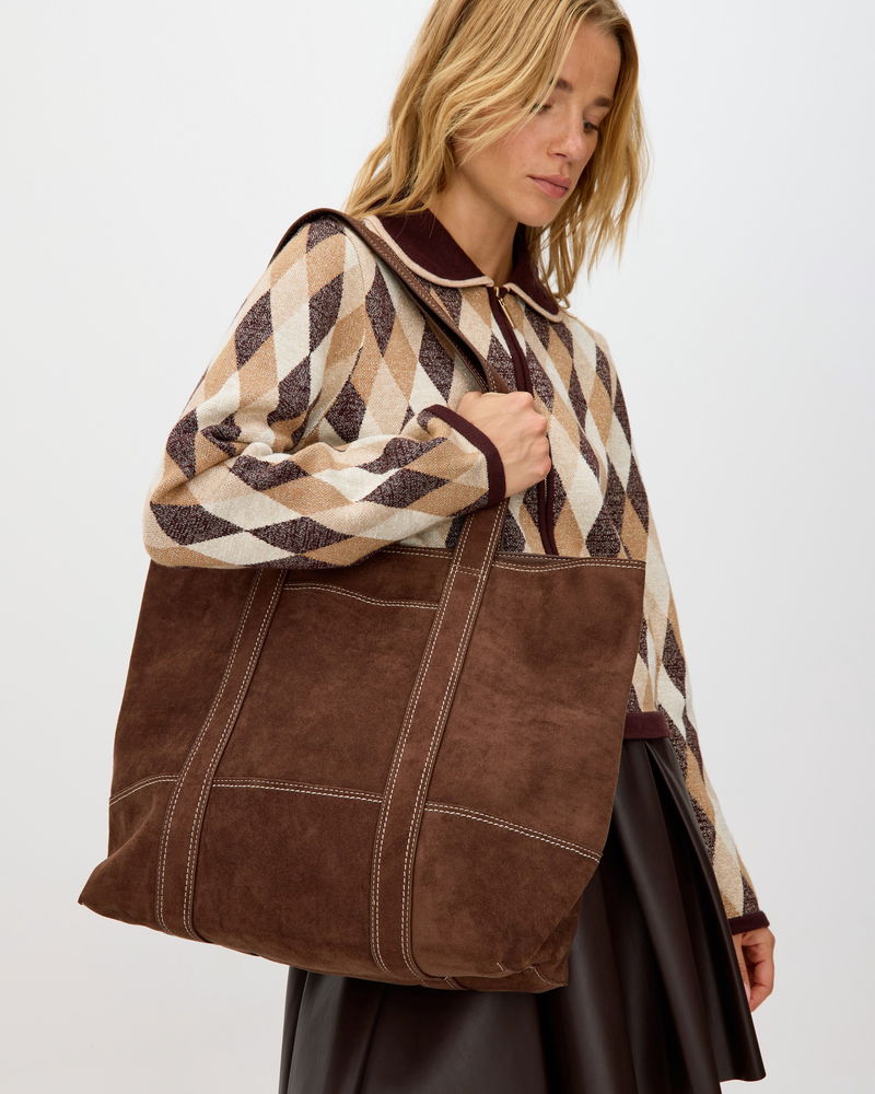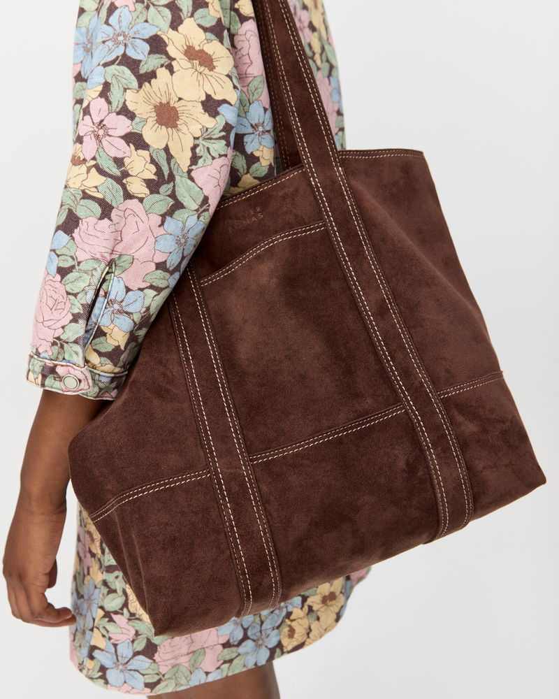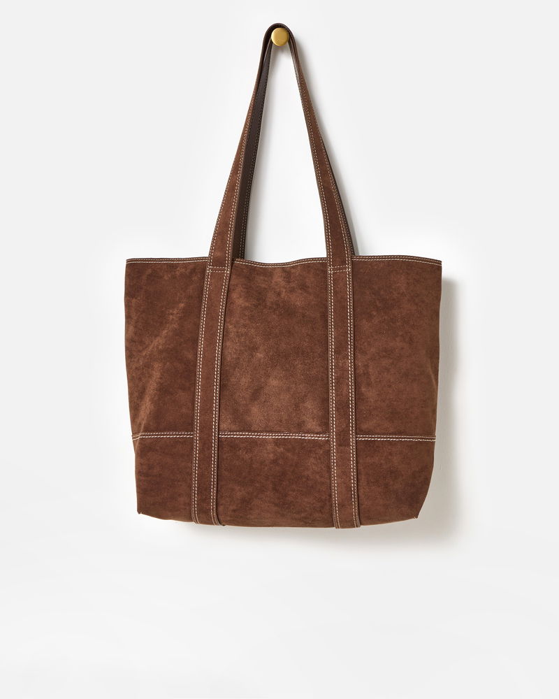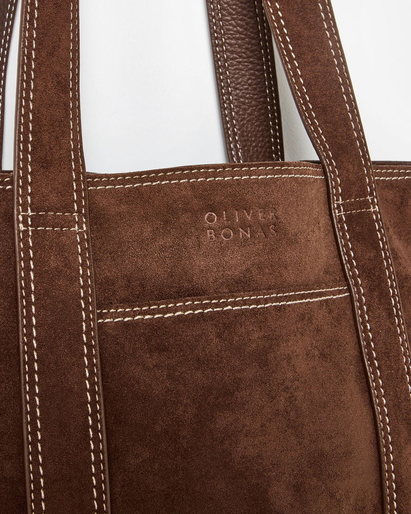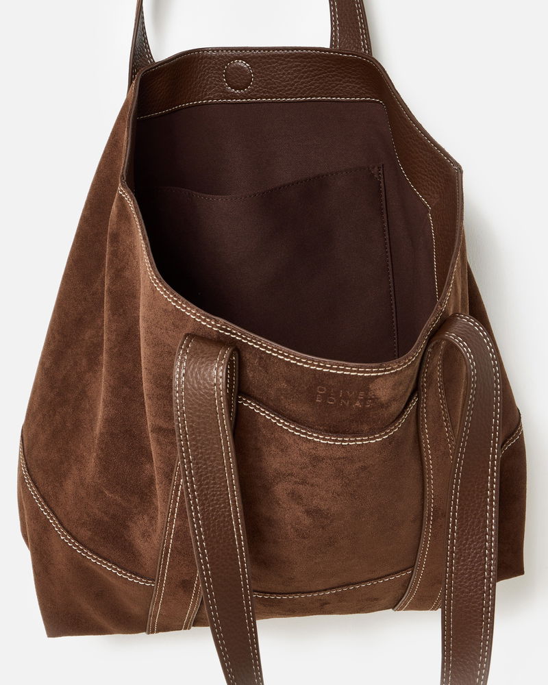Jennie Chocolate Brown Faux Suede Tote Bag