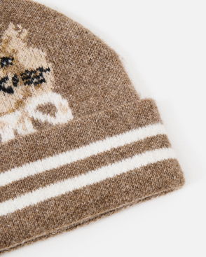 Cream cap hat with a tonal brown leopard print and an adjustable back, offering protection from the sun and comfort for all-day wear.
