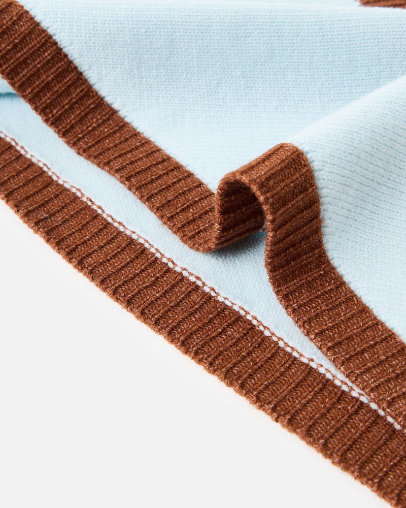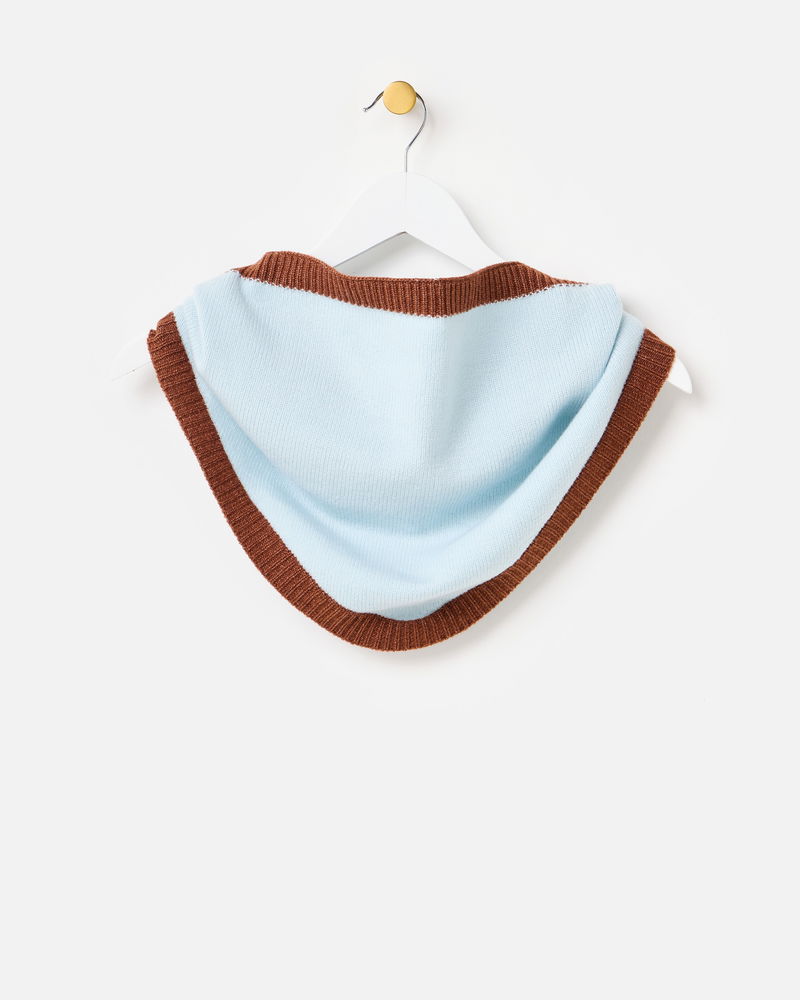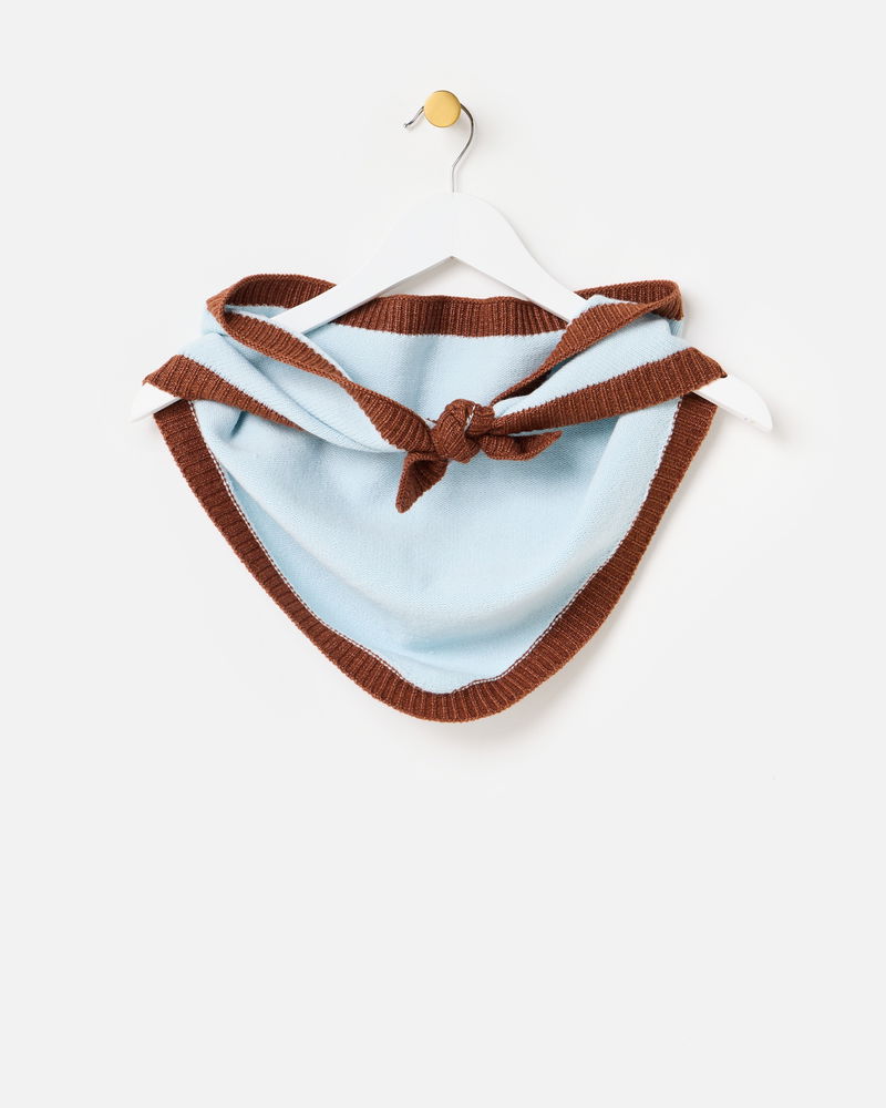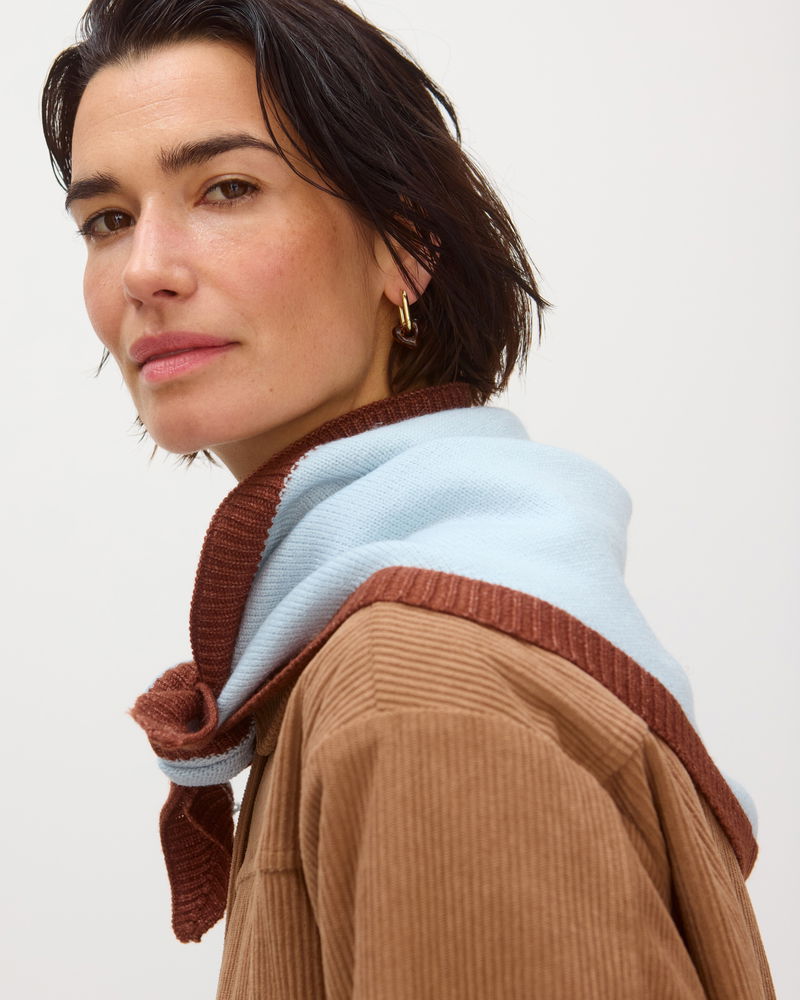 Light Blue & Chocolate Brown Ribbed Knit Triangle Scarf