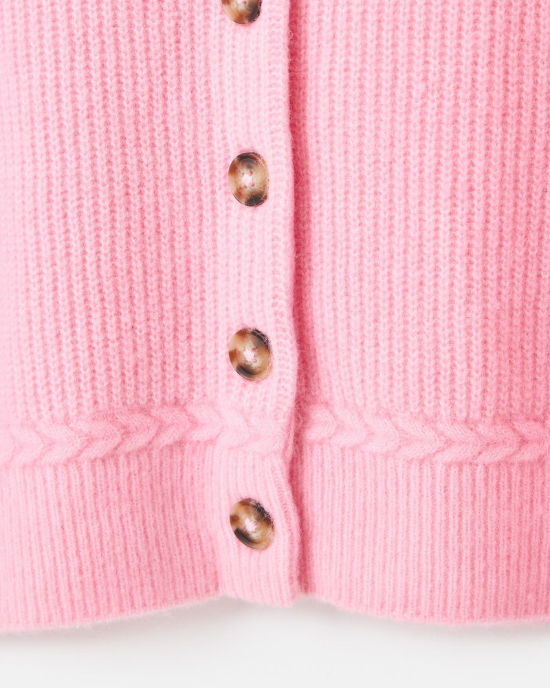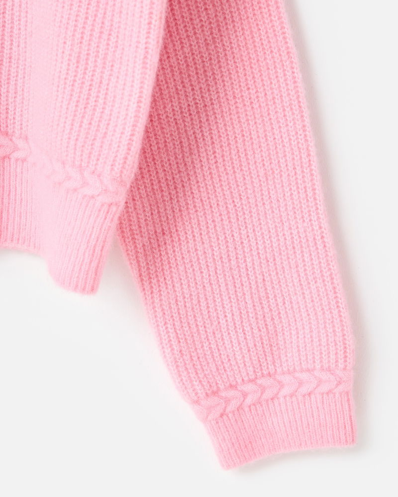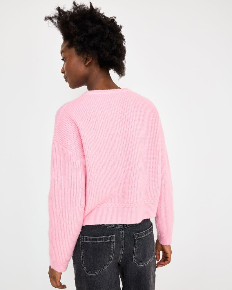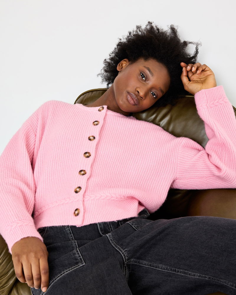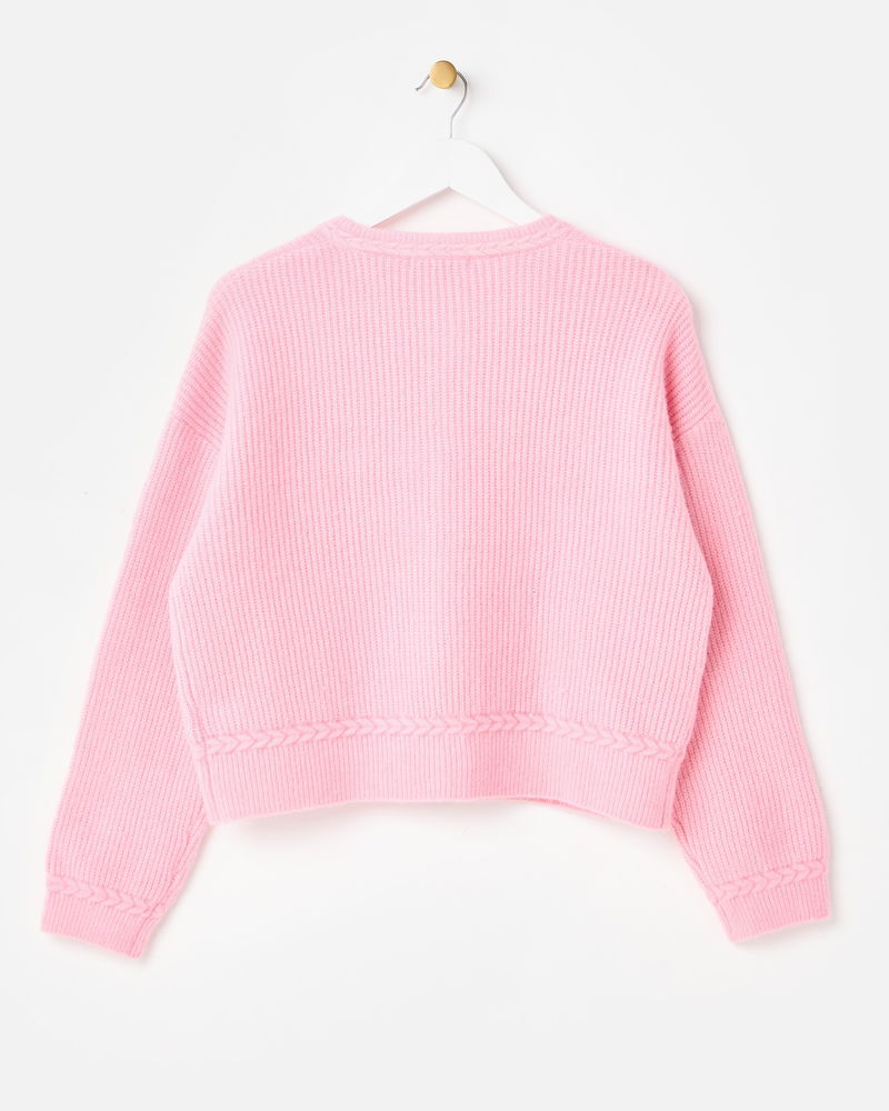 Light Pink Plait Stitch Crew Neck Knitted Cardigan