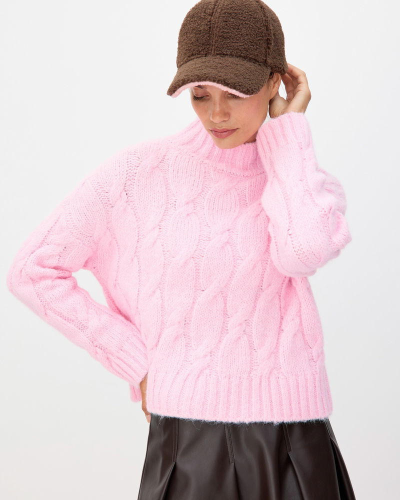 Light Pink Sparkle Chunky Cable Knit Jumper