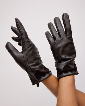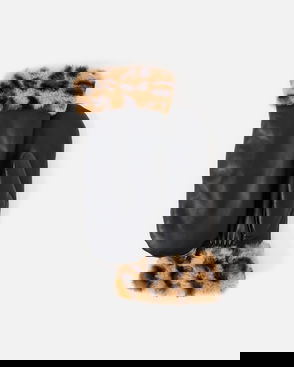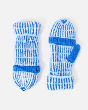 Long, fluffy wrist warmers knitted in an light blue marl.