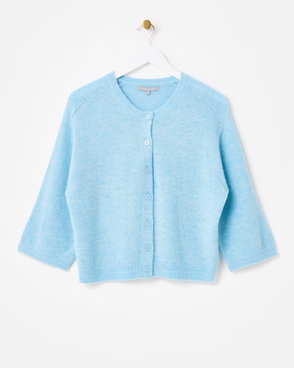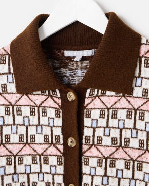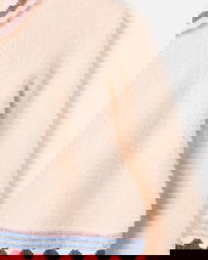 Our knitted cardigan features a bold cream, navy, pink, burgundy, green and blue striped pattern with a navy collar. Designed with brown faux tortoiseshell buttons down the front and a soft, fluffy finish, style with trousers for a casual, daytime look.