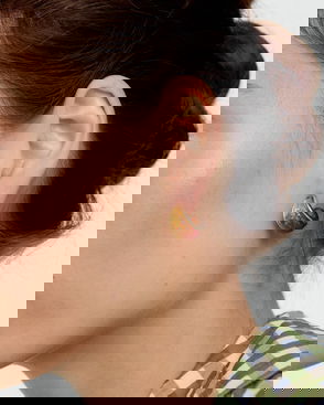 Medium sized gold tone hoop earrings with multiple beaded strands that dangle from the hoop for a colourful finish. Secured to a stud base, each of the charms feature multiple long and round beads, with tiny gold spacers in between and a shell bead to finish. Each of the strands is removable, so you can play around with styling your hoop earrings with multiple, single or without the charms for a customisable look, perfect for festival looks and complimenting summer outfits.