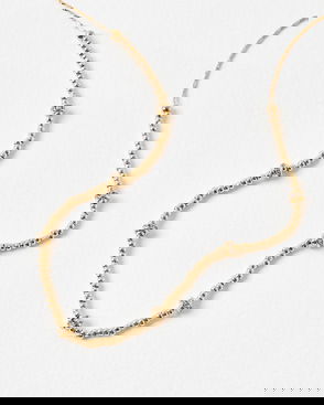Gold-toned chain necklace with textured bar links, and five rounded faux-pearl beads spread along the chain. With an adjustable lobster clasp fastening, this necklace can be worn flush with the collar or as a long necklace, depending on the wearers preference. Pair with the matching Parelle pearl drop earrings to complete the set.