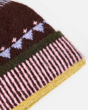 Peach & Brown Fair Isle Knitted Beanie Hat