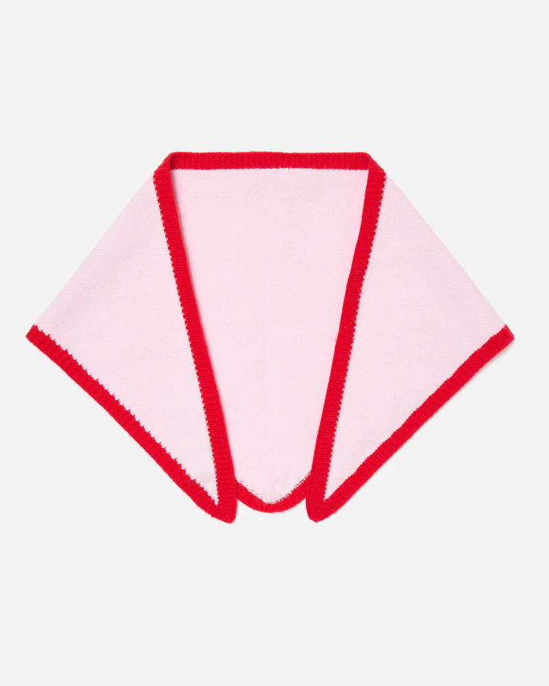 Description: Designed to be worn multiple ways, our ribbed triangle scarf is the perfect cold-weather layer to your outfit. Knitted in a light pink shade with a striking red trim, wear it wrapped around your neck or draped over your shoulders for an easy, laid-back look. Materials: 100% Polyester Product Code: 1950304