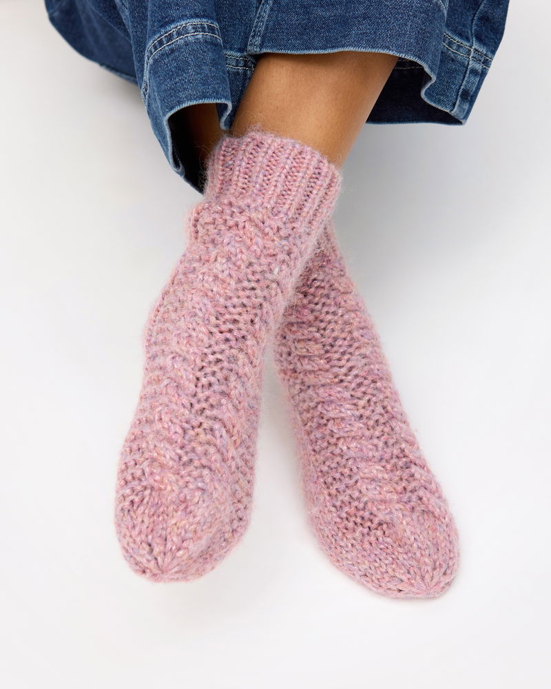 Pink Marl Cable Knit Shimmer Cosy Socks