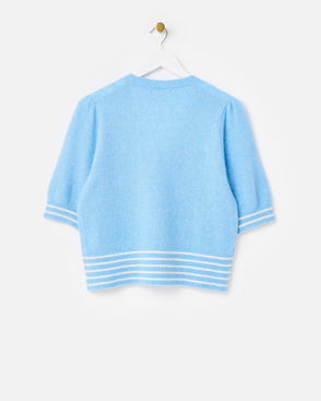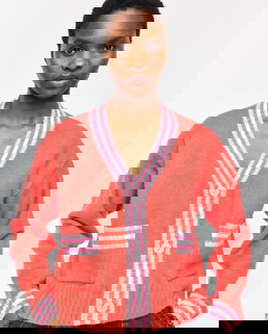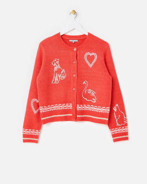 Red & White Blanket Stitch Collared Knitted Cardigan