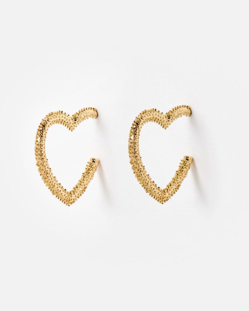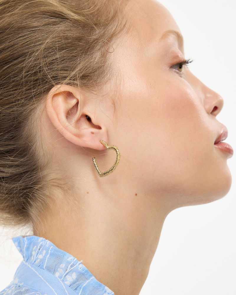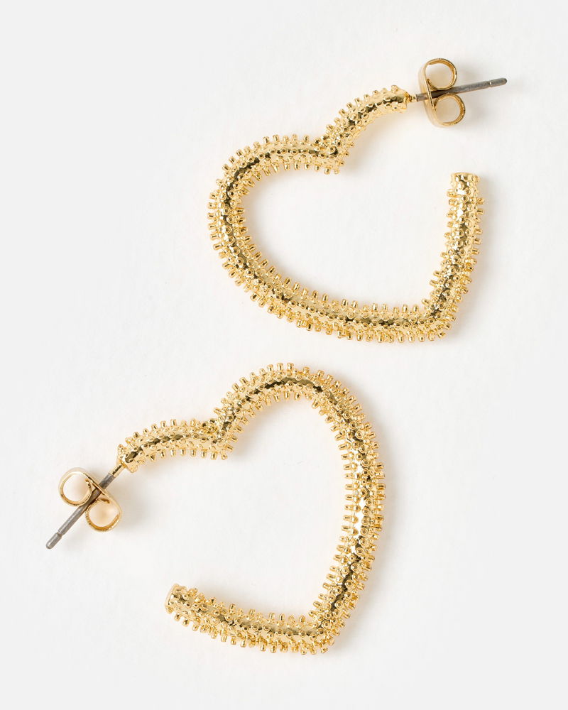 Rosina Textured Gold Tone Heart Hoop Earrings
