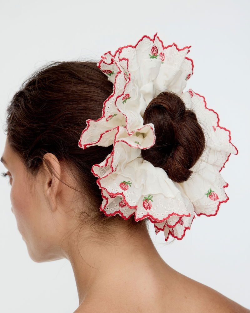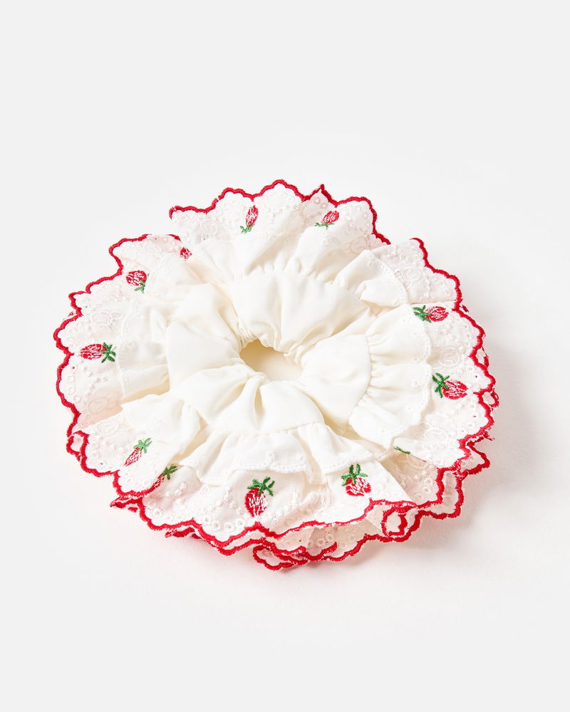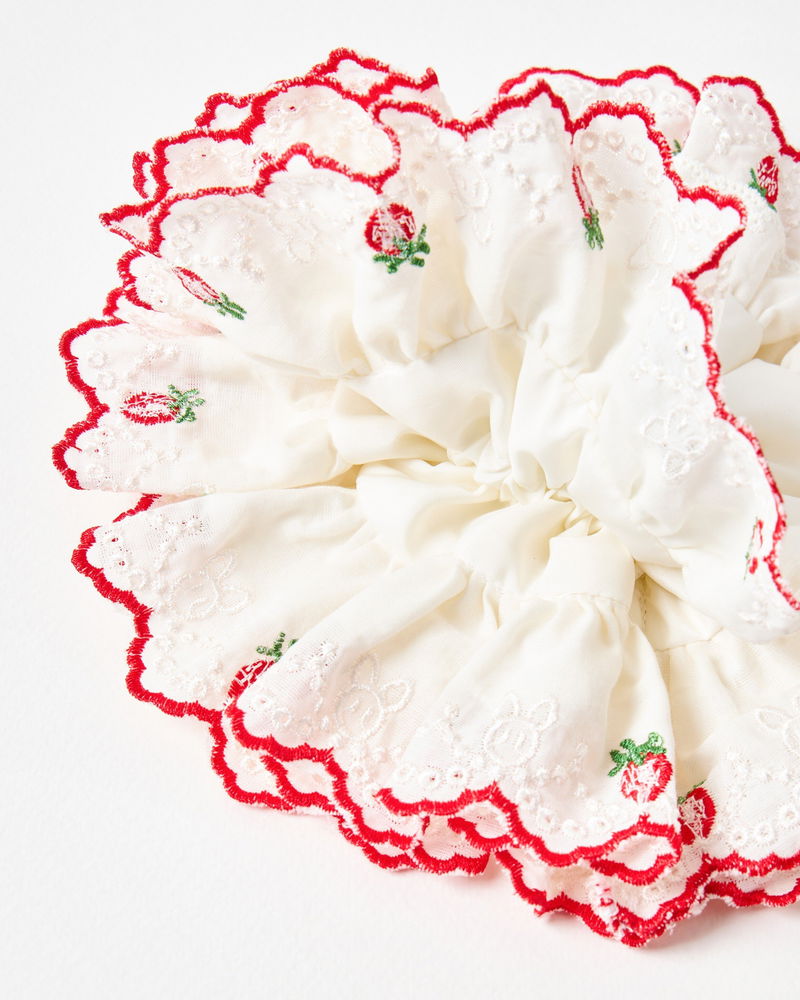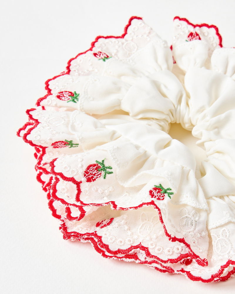 Serena Strawberry Frill Layered Embroidered Large Scrunchie