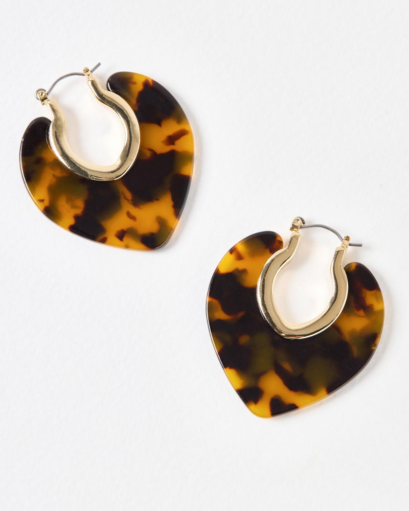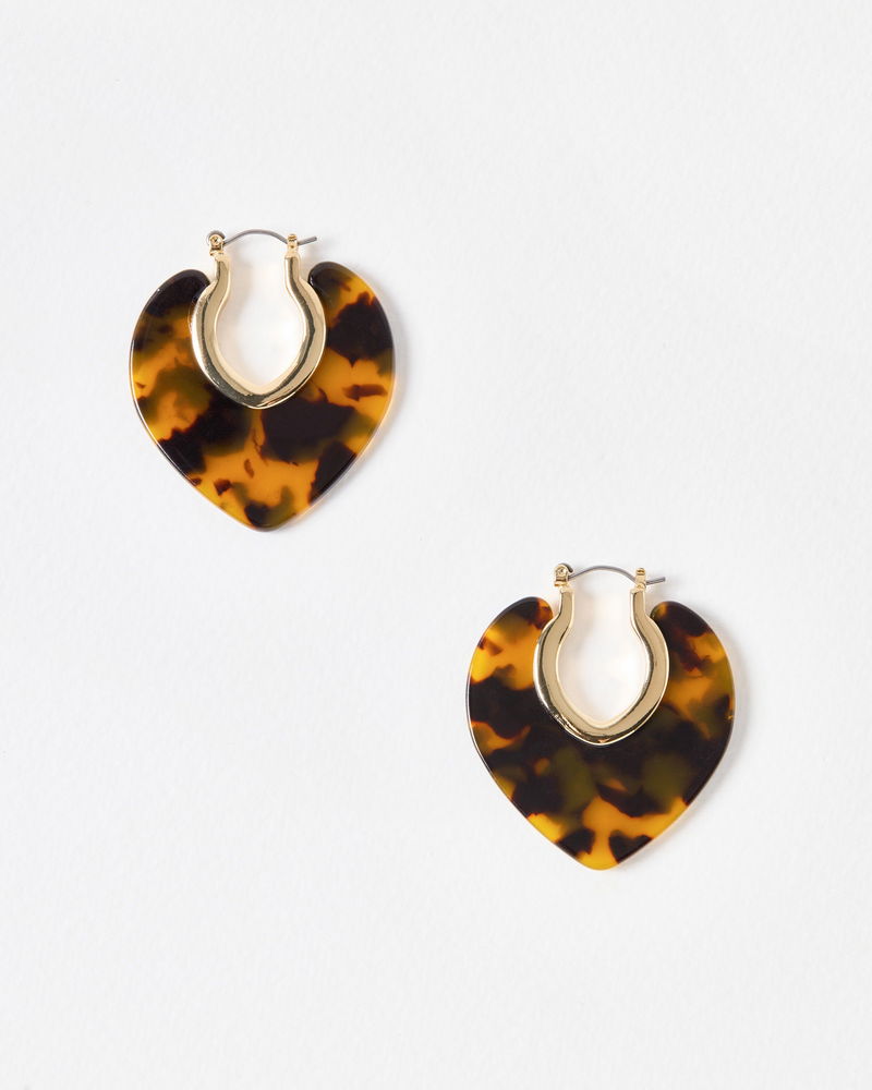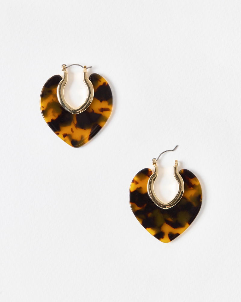 Sofia Brown Faux Tortoiseshell Resin Heart Hoop Earrings