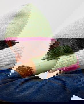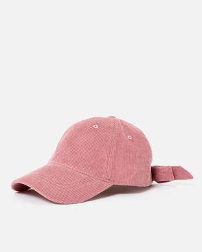 Khaki green cap made from a washed fabric with a bow detail at the back.