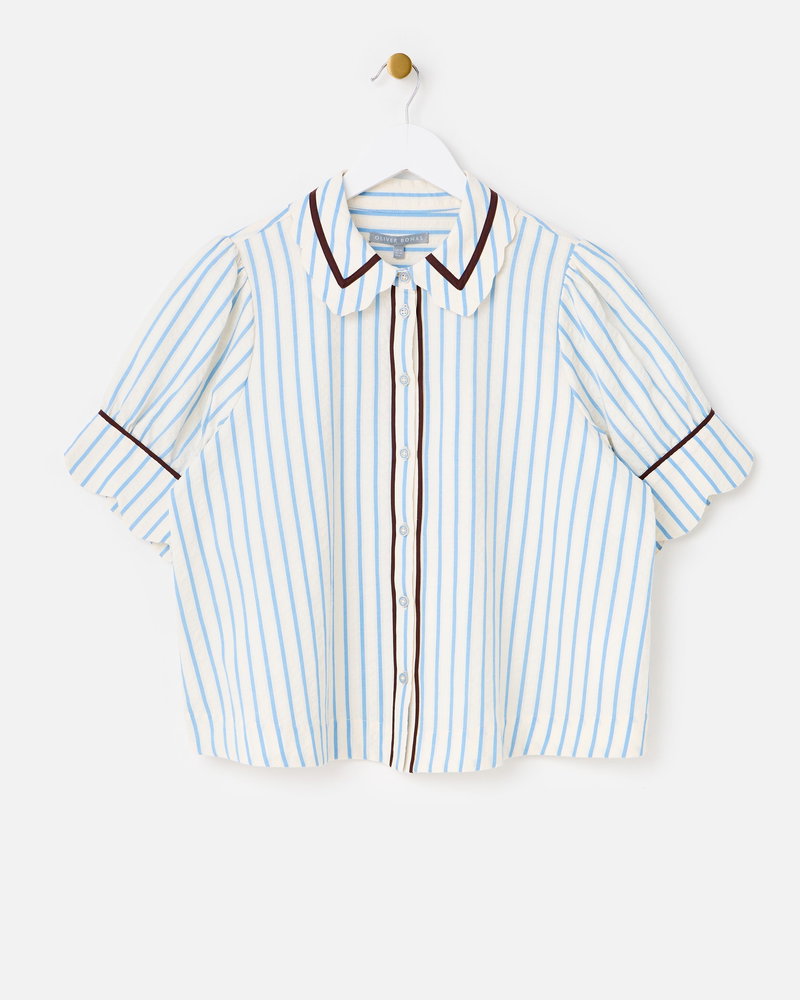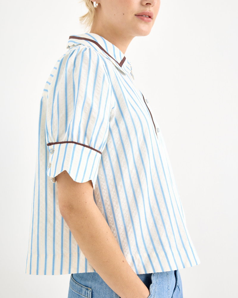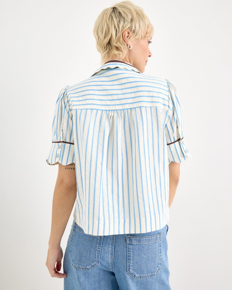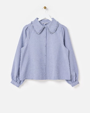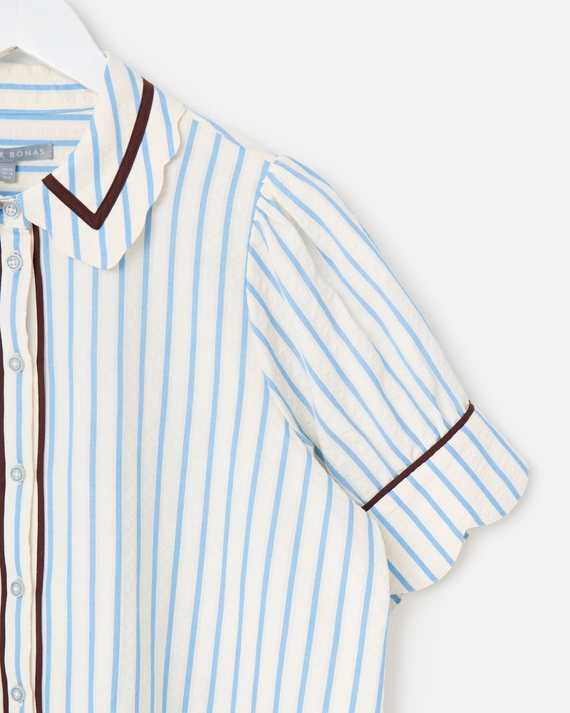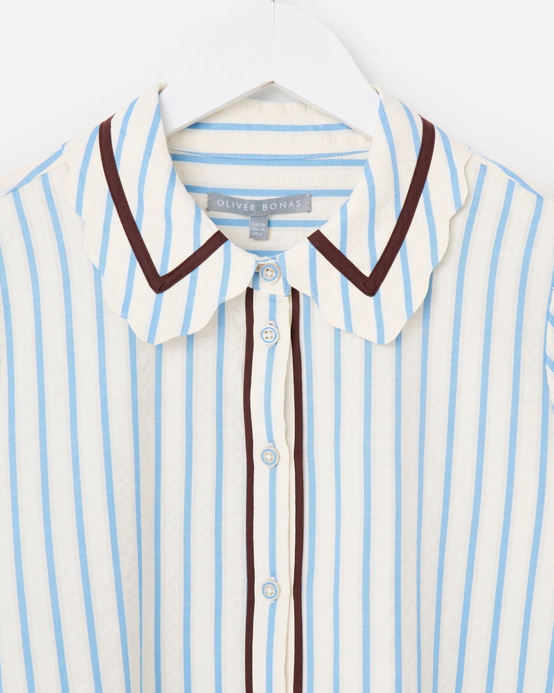 White & Blue Striped Scalloped Collar Shirt