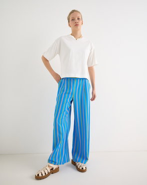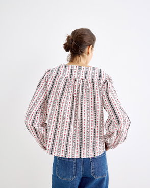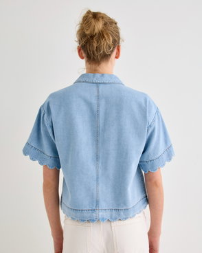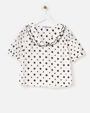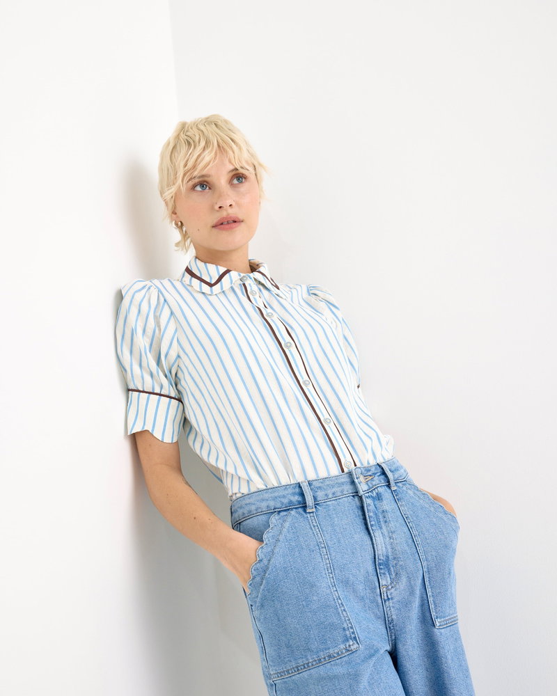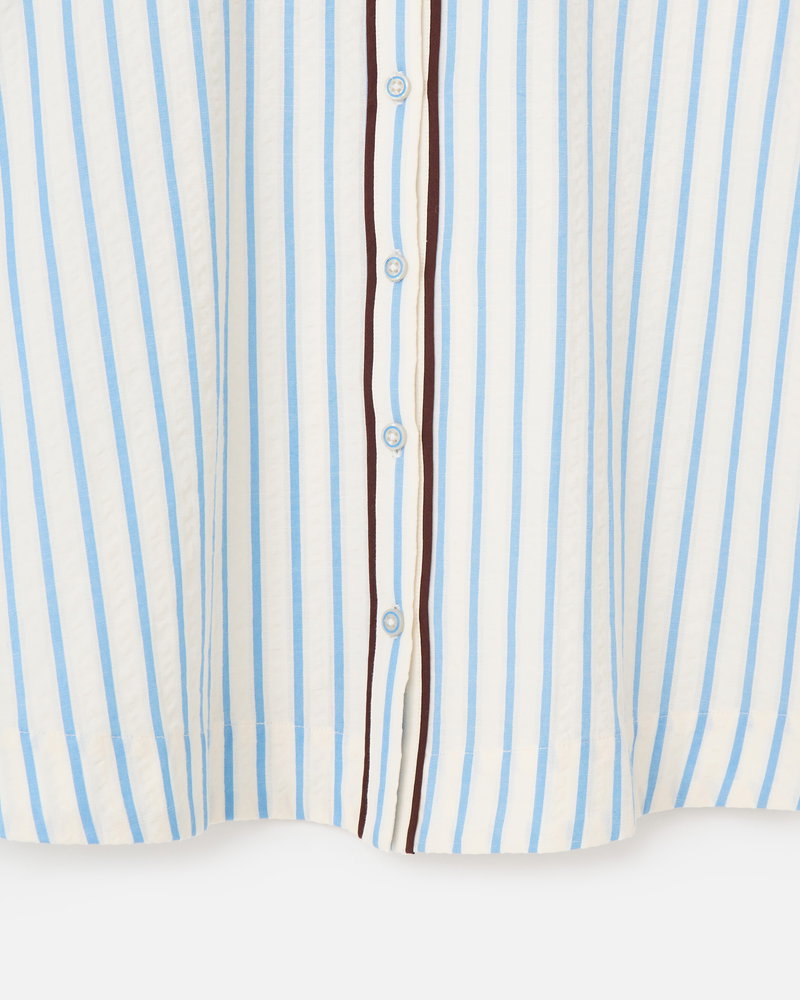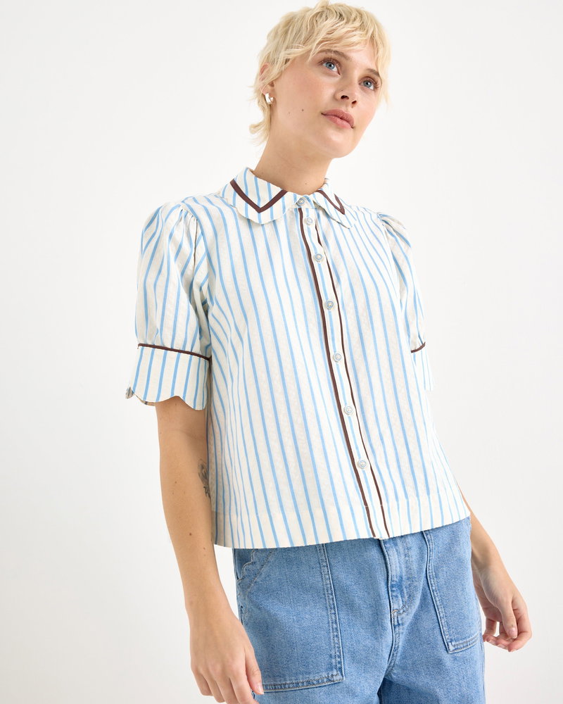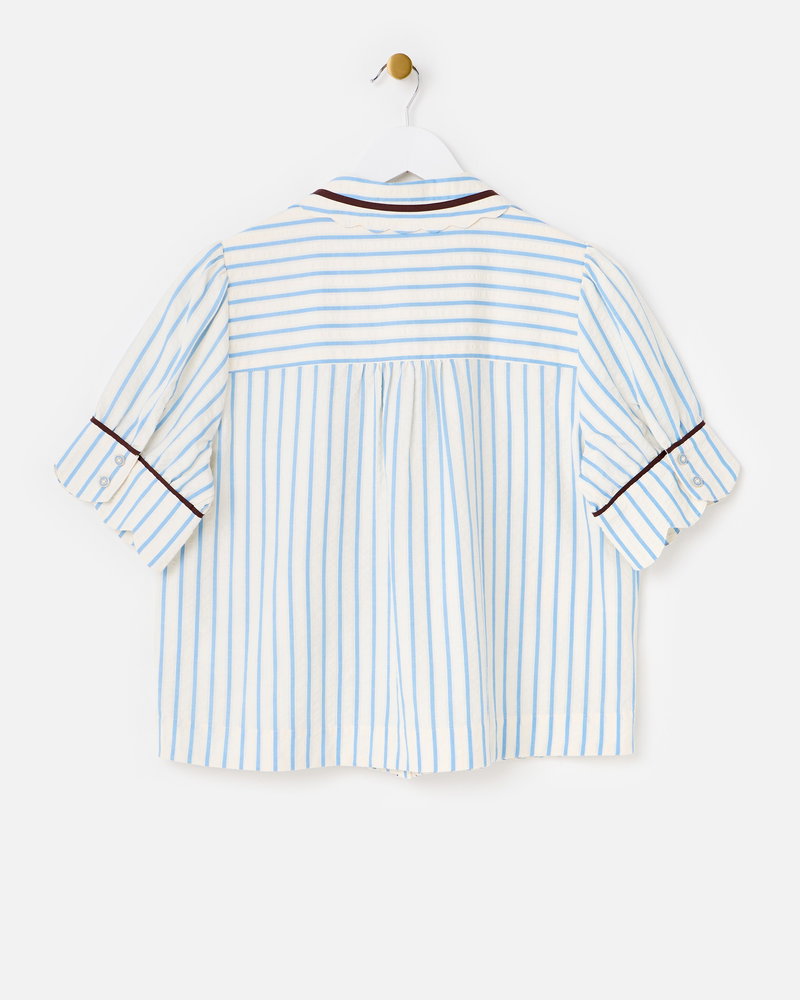 White & Blue Striped Scalloped Collar Shirt