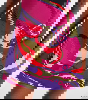The iconic psychedelic swirling motif is a brand signature, which earned Pucci the title "Prince of Prints". This Orchidee print minidress features a low back with dainty straps, a cinched waist, and subtle draping at the neckline.