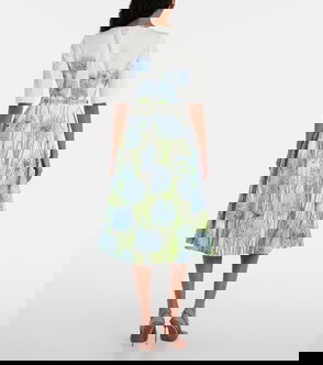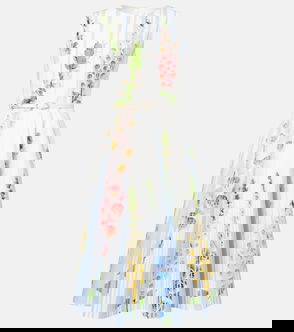 Known for its romantic rendering of blooms, Oscar de la Renta's designs bring the beauty of nature to ready-to-wear. Delicate florals and small bow details grace this cotton-blend midi dress.