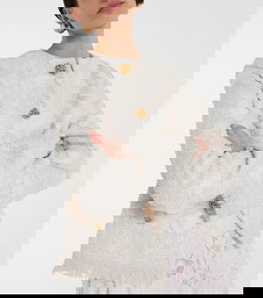 Grosgrain-trimmed Houndstooth Cotton-blend Tweed Jacket