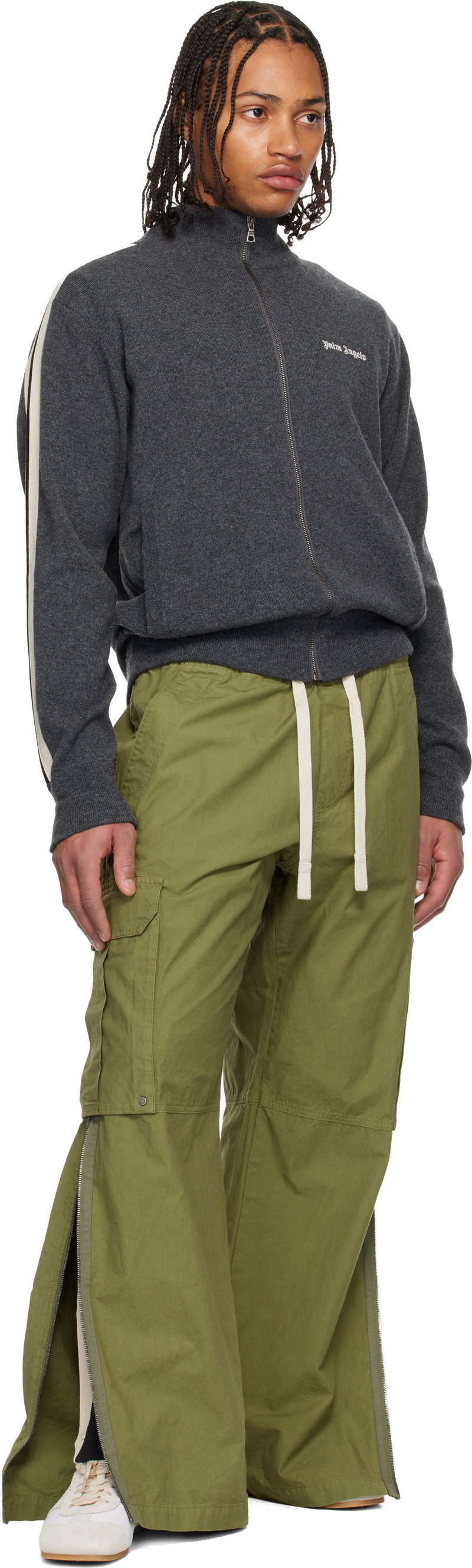 Launched by an alumnus of Moncler, Palm Angels blends elements of SoCal street and activewear with tailoring and luxe details. Moncler-grade puffer jackets, embroidered logo T-shirts and tank tops, track pants and joggers meet cropped cotton shirting and crisp pleated minis, for a fresh take on 90s sports luxe.