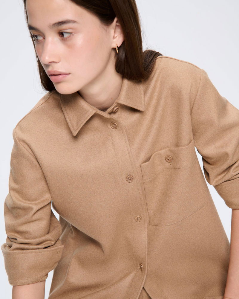 Sale Womens Recycled Wool Long-Sleeve Shirt—Desert Camel