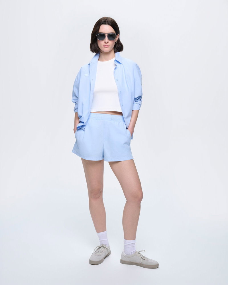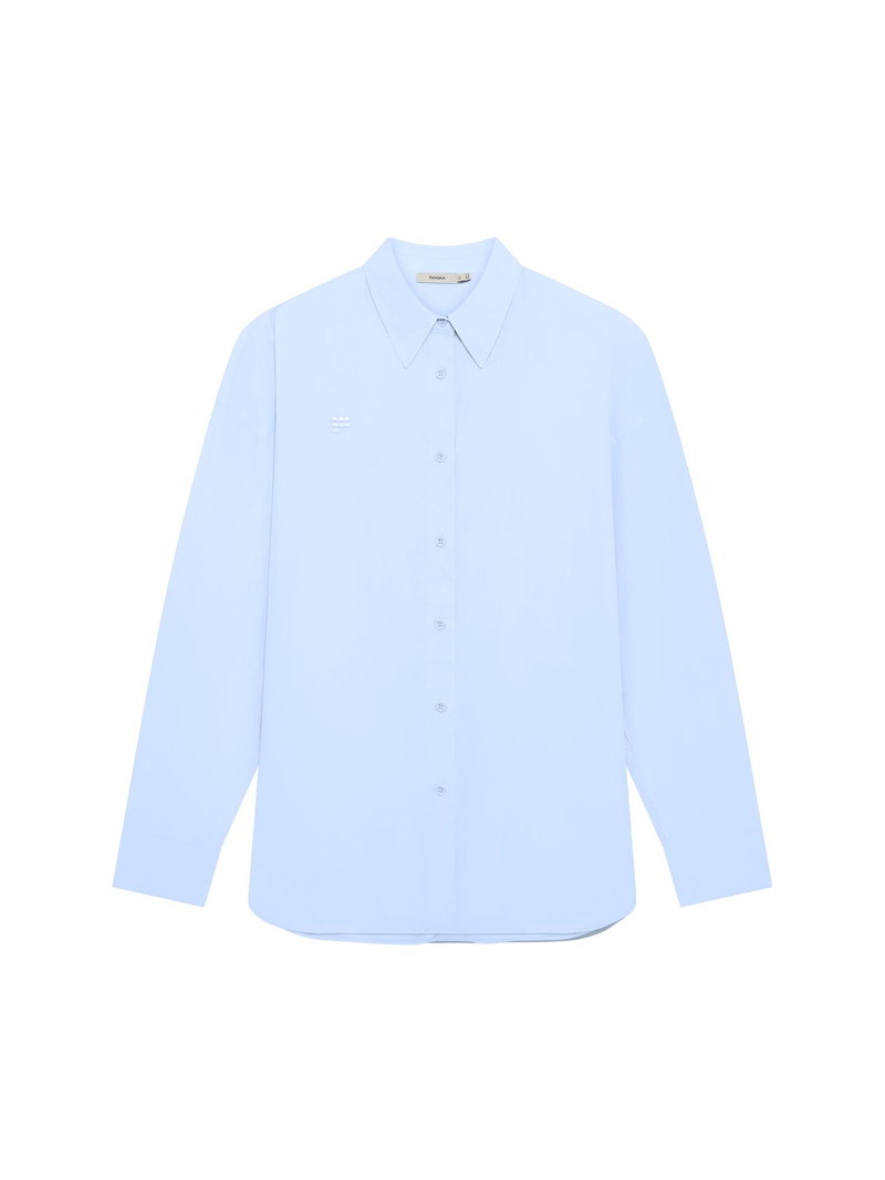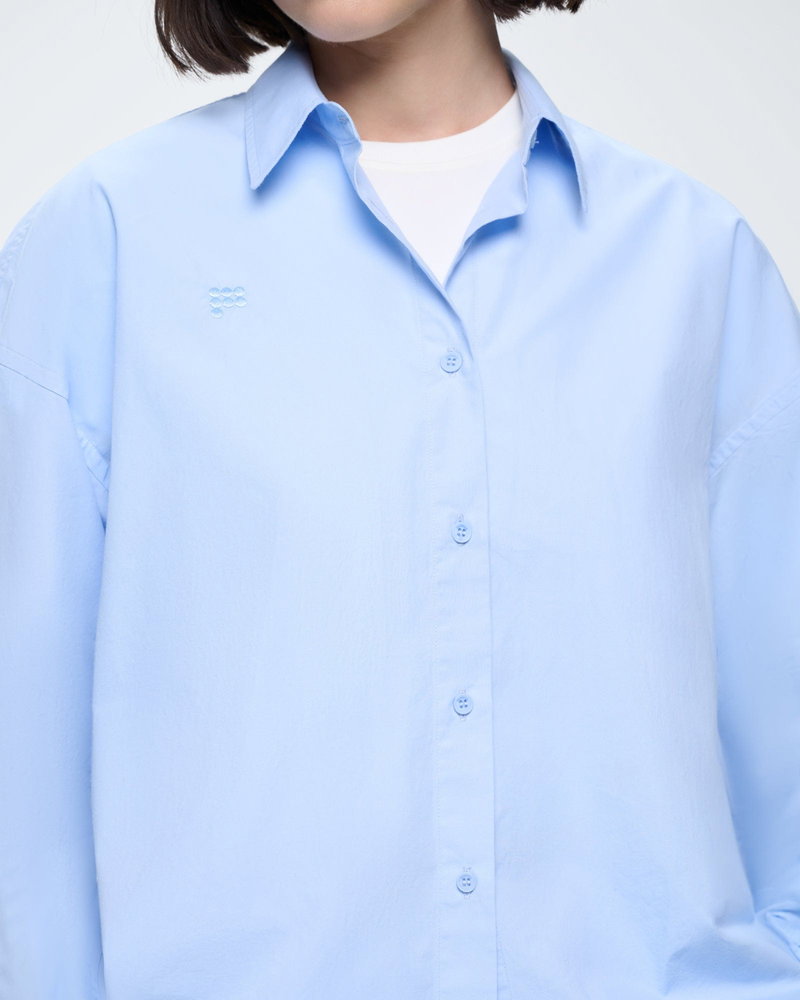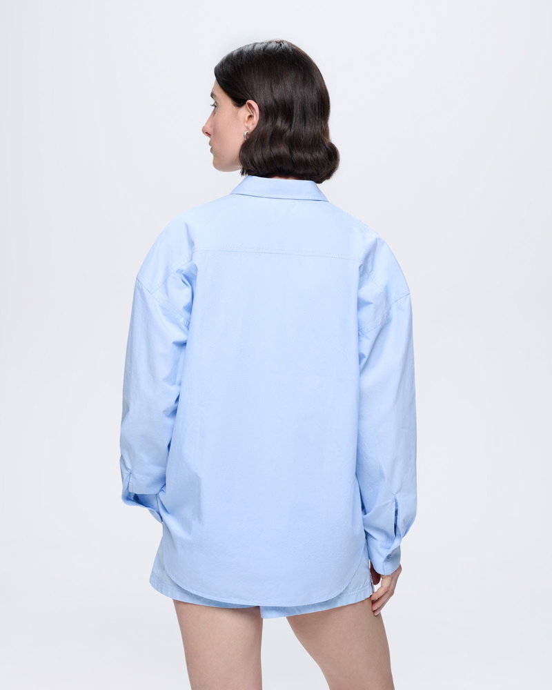 Effortless by nature. Expertly crafted from 100% OCS-certified organic cotton poplin, the Cotton Overshirt in Wildflower Blue offers a lightweight, breathable weave and an oversized fit.
